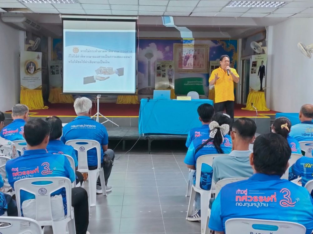 อบรมให้ความรู้แก่ผู้นำชุมชน กำนัน ผู้ใหญ่บ้าน ในพื้นที่อำเภอไทรโยค จังหวัดกาญจนบุรี โครงการเพิ่มประสิทธิภาพการไกล่เกลี่ย ประนอม และระงับข้อพิพาท ประจำปีงบประมาณ พ.ศ. 2568 ในวันพุธที่ 2 กรกฎาคม 2568