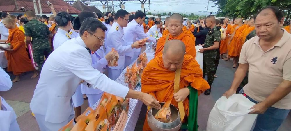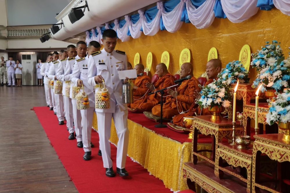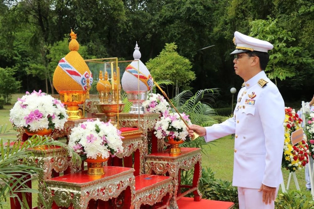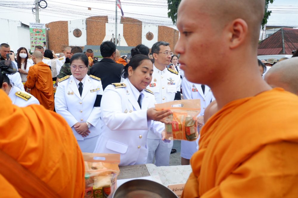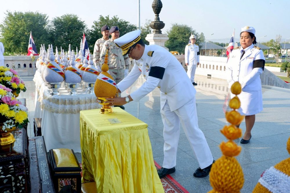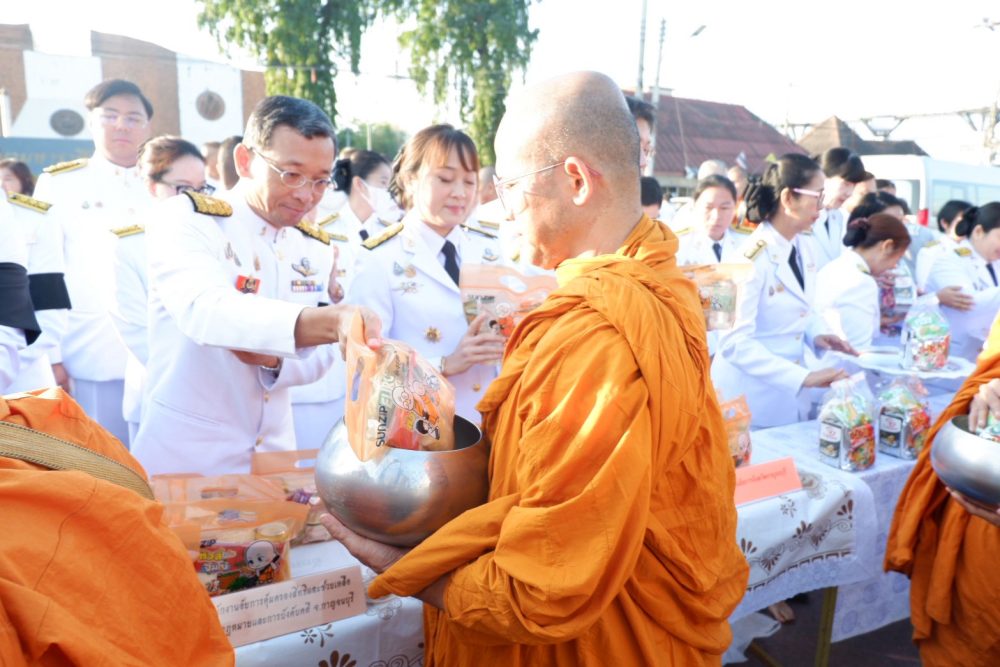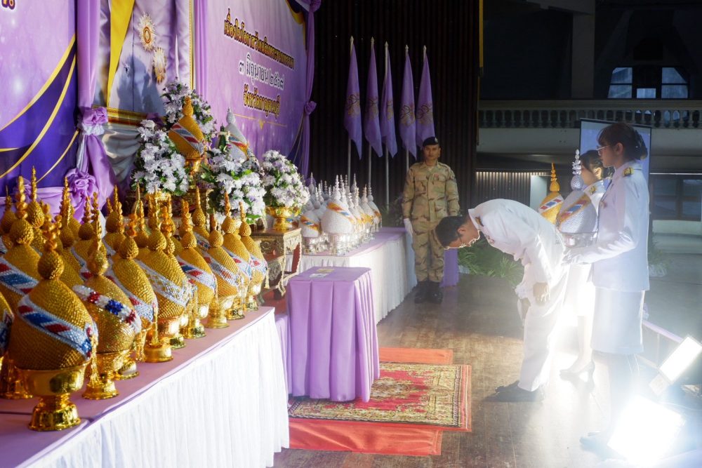 พิธีทำบุญตักบาตรถวายพระราชกุศล พิธีถวายเครื่องราชสักการะและวางพานพุ่ม