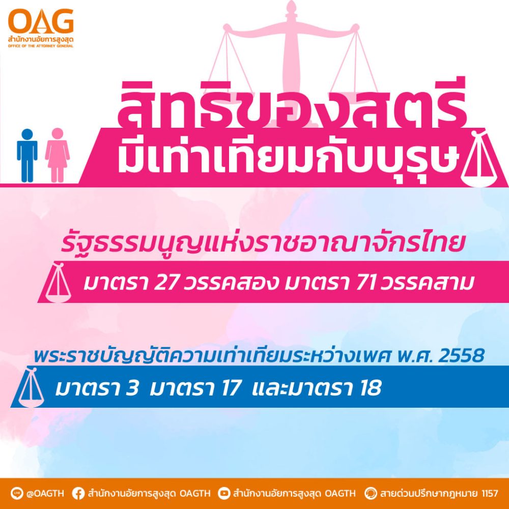 ๕. บุคคลย่อมเสมอกันในกฎหมายและได้รับความคุ้มครองตามกฎหมายเท่าเทียมกัน ชายและหญิงมีสิทธิเท่าเทียมกัน (มาตรา ๓๐)
