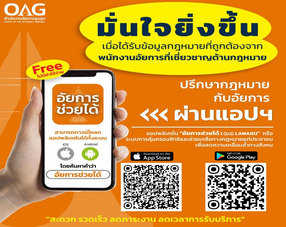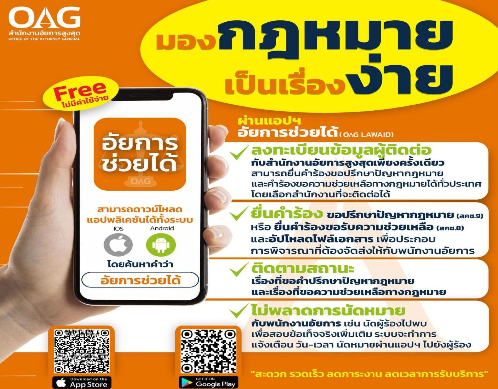 มองกฎหมายเป็นเรื่องง่าย ผ่านแอปฯ “อัยการช่วยได้ (OAG LAWAID)