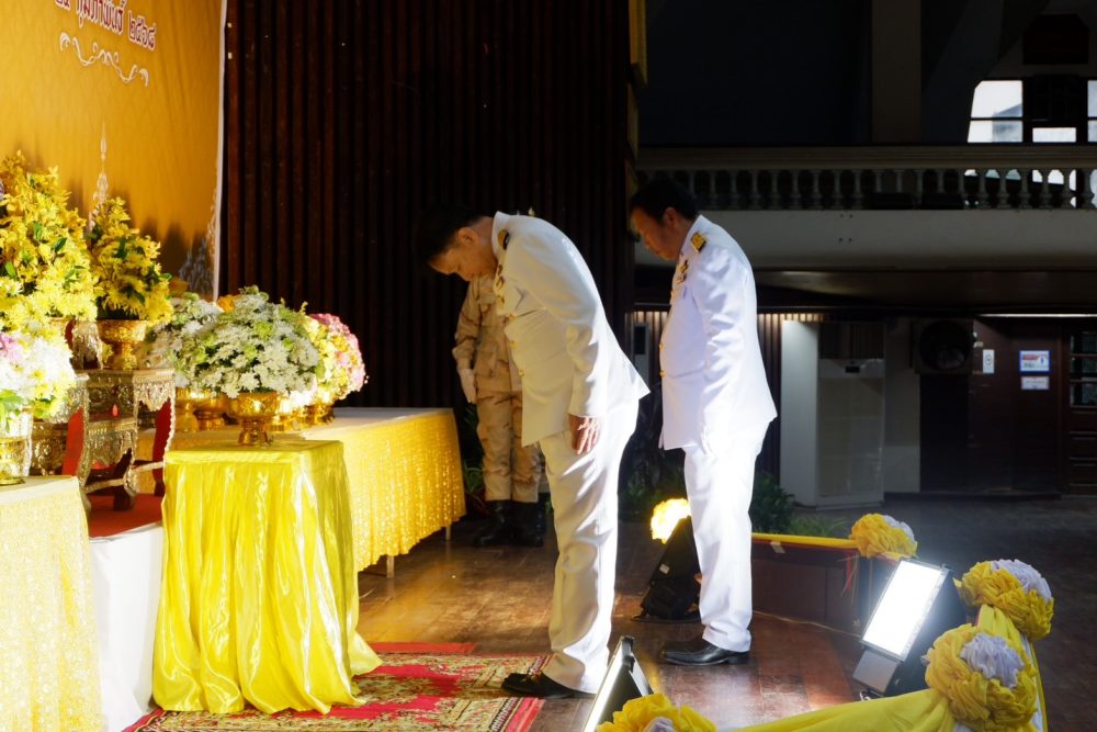 เครื่องราชสักการะและวางพานพุ่ม และพิธีจุดเทียนถวายพระพรชัยมงคล เนื่องในโอกาส