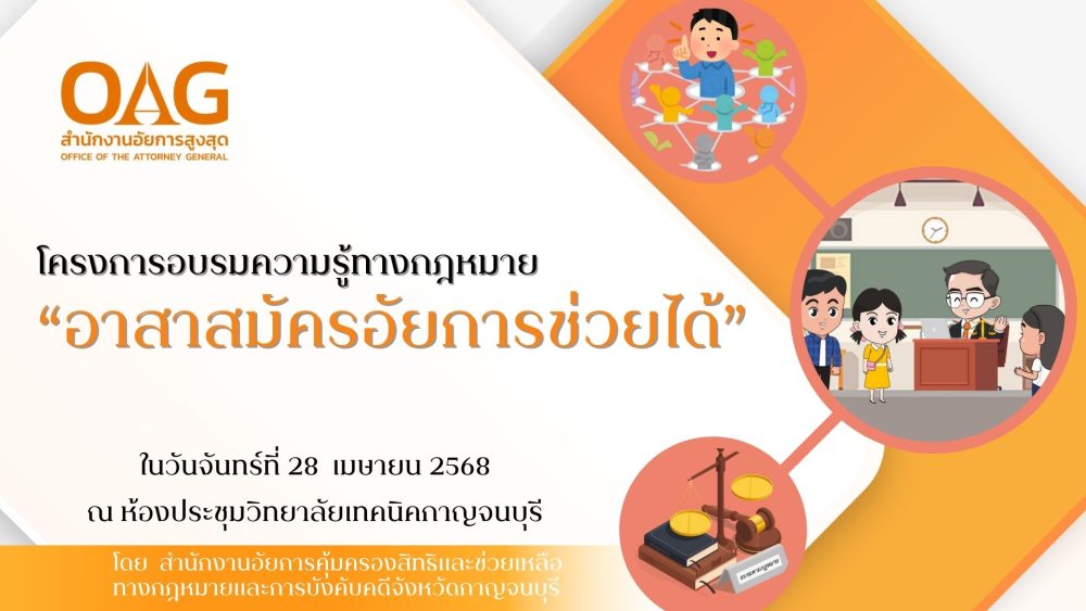 สำนักงานอัยการคุ้มครองสิทธิและช่วยเหลือทางกฎหมายและการบังคับคดีจังหวัดกาญจนบุรี จัดโครงการอบรมความรู้เกี่ยวกับกฎหมายในชีวิตประจำวันและการคุ้มครองสิทธิประชาชนเกี่ยวกับเอดส์ วันศุกร์ที่ 23 มกราคม 2569