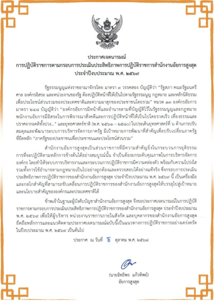 การปฏิบัติราชการตามกรอบการประเมินประสิทธิภาพการปฏิบัติราชการสำนักงานอัยการสูงสุด
