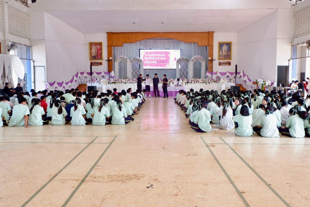 จัดโครงการอบรมความรู้เกี่ยวกับกฎหมายในชีวิตประจำวันและการคุ้มครองสิทธิประชาชนเกี่ยวกับเอดส์ ณ ห้องประชุมโรงเรียนเทพศิรินทร์ ลาดหญ้า กาญจนบุรี ตำบลลาดหญ้า อำเภอเมืองกาญจนบุรี จังหวัดกาญจนบุรี ในวันพฤหัสบดีที่ 17 กรกฎาคม 2568