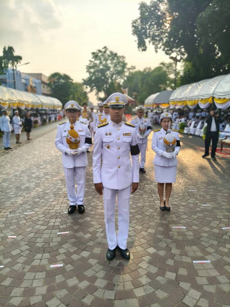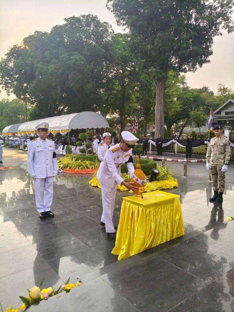 เข้าร่วมพิธีกิจกรรมพิธีสวดพระพุทธมนต์ ทำบุญตักบาตรถวายพระราชกุศล และ พิธีวางพวงมาลา