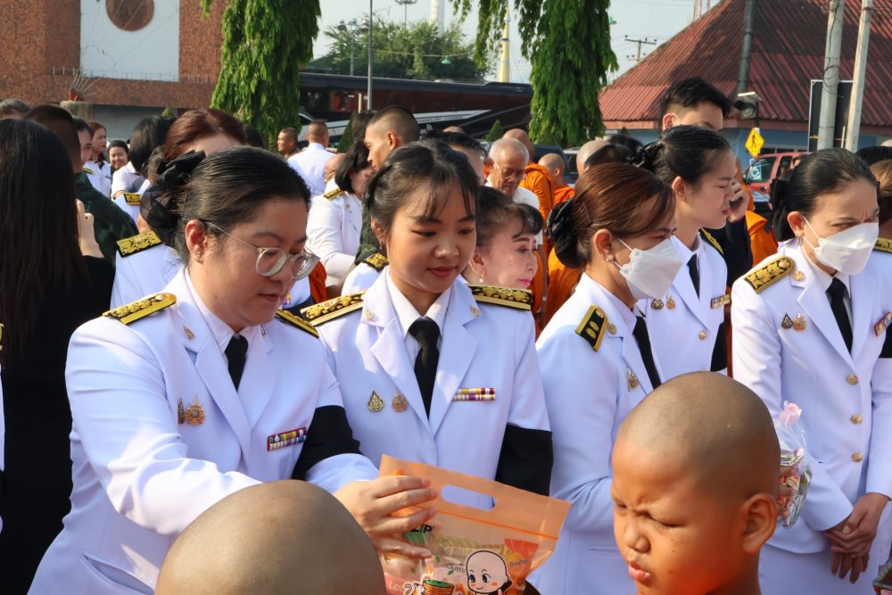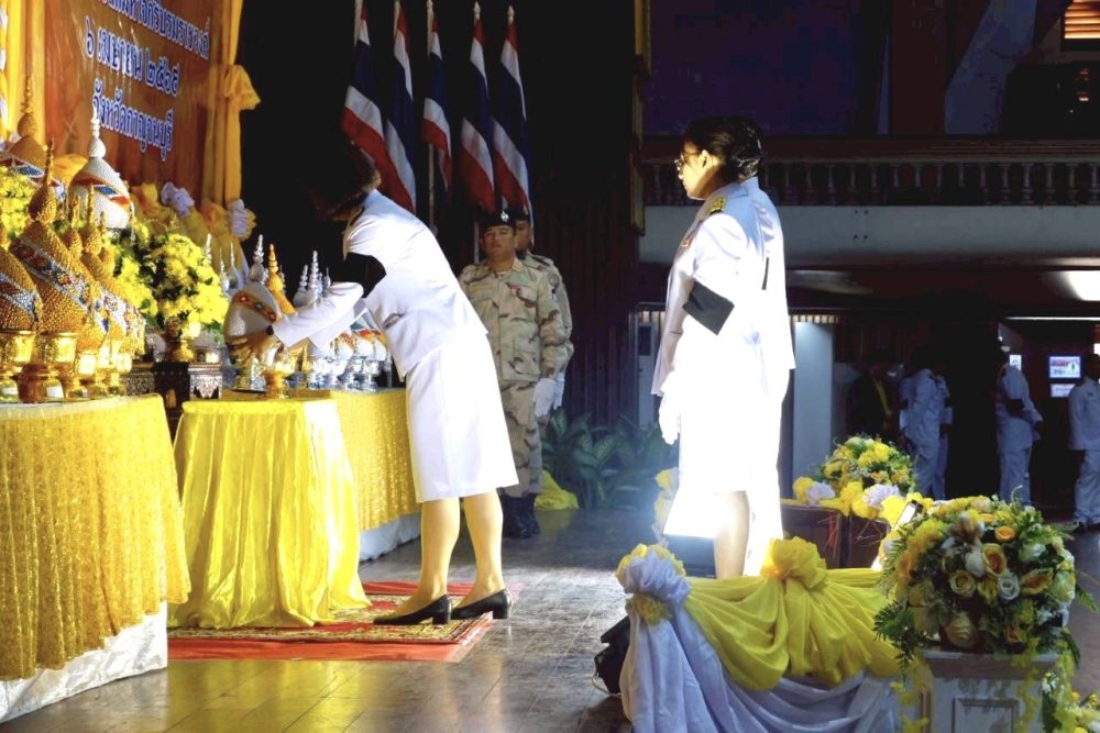 พิธีทำบุญตักบาตรถวายพระราชกุศล พิธีถวายเครื่องราชสักการะและวางพานพุ่ม