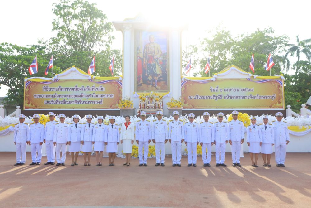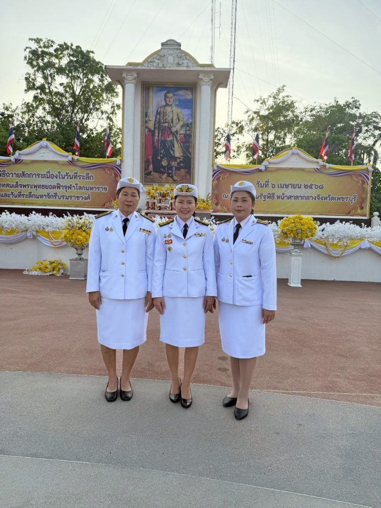 วันอาทิตย์ที่ 6 เมษายน 2568 เวลา 06.45 น. นายนภสินธุ์ สังข์พุ่ม อัยการจังหวัดคดีเยาวชนและครอบครัวจังหวัดเพชรบุรี มอบหมายให้ นางสาวพรพิมล สวัสดิผล อัยการจังหวัดประจำสำนักงานอัยการสูงสุด พร้อมเจ้าหน้าที่เข้าร่วม ฯ พิธีถวายสักการะเนื่องใน “วันที่ระลึกพระบาทสมเด็จพระพุทธยอดฟ้าจุฬาโลกมหาราช และวันที่ระลึกมหาจักรีบรมราชวงศ์ ณ บริเวณลานรัฐพิธี หน้าศาลากลางจังหวัดเพชรบุรี อำเภอเมืองเพชรบุรี จังหวัดเพชรบุรี
