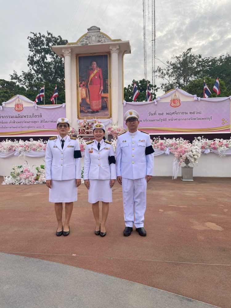 ในวันอังคารที่ 25 พฤศจิกายน พ.ศ 2568 เวลา 06:30 น นายนภสินธุ์ สั่งพุ่ม อัยการจังหวัดคดีเยาวชนและครอบครัวจังหวัดเพชรบุรี มอบหมายให้ นางสาวพรพิมล สวัสดิผล อัยการจังหวัดประจำสำนักงานอัยการสูงสุด พร้อมเจ้าหน้าที่ ร่วมกิจกรรมงานเฉลิมพระเกียรติพระบาทสมเด็จพระมงกุฎเกล้าเจ้าอยู่หัว เนื่องในโอกาศวันคล้ายวันสวรรคตครบ 100 ปี และงานเฉลิมพระเกียรติสมเด็จพระเจ้าภคินีเธอ เจ้าฟ้าเพชรรัตนราชสุดาสิริโสภาพัณณวดี เนื่องในโอกาศวันคล้ายวันประสูติครบ 100 ปี ณ บริเวณลานรัฐพิธี หน้าศาลากลางจังหวัดเพชรบุรี อำเภอเมืองเพชรบุรี จังหวัดเพชรบุรี