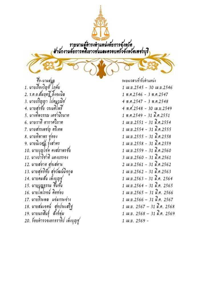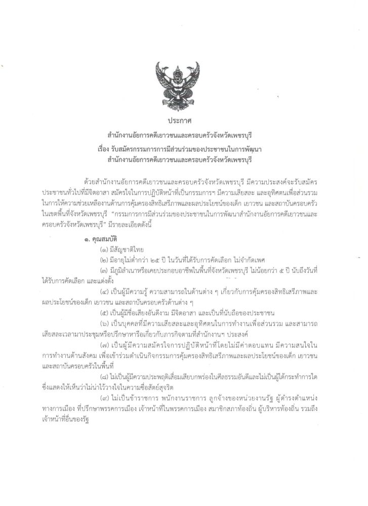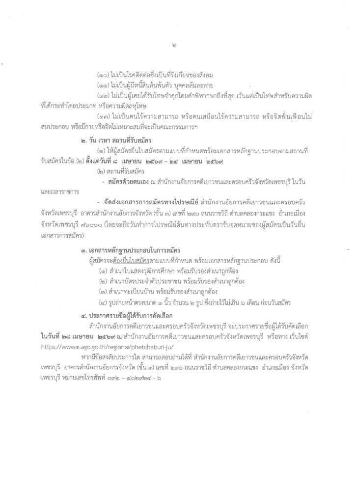 2.รับผิดชอบงานคุ้มครองสิทธิ เสรีภาพ และผลประโยชน์ของเด็กและเยาวชนในจังหวัดเพชรบุรี