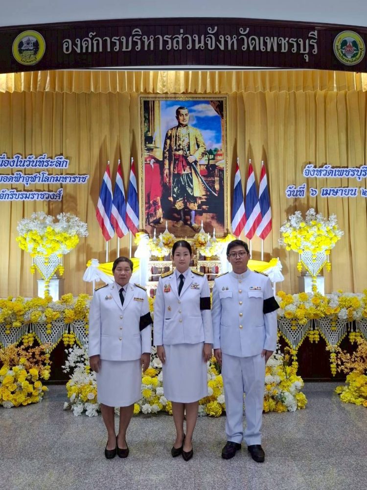 วันอาทิตย์ที่ 6 เมษายน 2568 เวลา 06.45 น. นายนภสินธุ์ สังข์พุ่ม อัยการจังหวัดคดีเยาวชนและครอบครัวจังหวัดเพชรบุรี มอบหมายให้ นางสาวพรพิมล สวัสดิผล อัยการจังหวัดประจำสำนักงานอัยการสูงสุด พร้อมเจ้าหน้าที่เข้าร่วม ฯ พิธีถวายสักการะเนื่องใน “วันที่ระลึกพระบาทสมเด็จพระพุทธยอดฟ้าจุฬาโลกมหาราช และวันที่ระลึกมหาจักรีบรมราชวงศ์ ณ บริเวณลานรัฐพิธี หน้าศาลากลางจังหวัดเพชรบุรี อำเภอเมืองเพชรบุรี จังหวัดเพชรบุรี