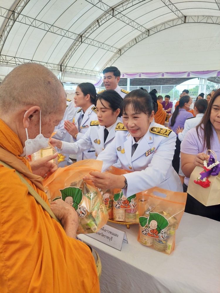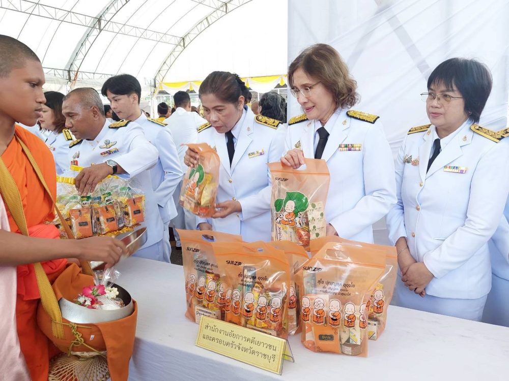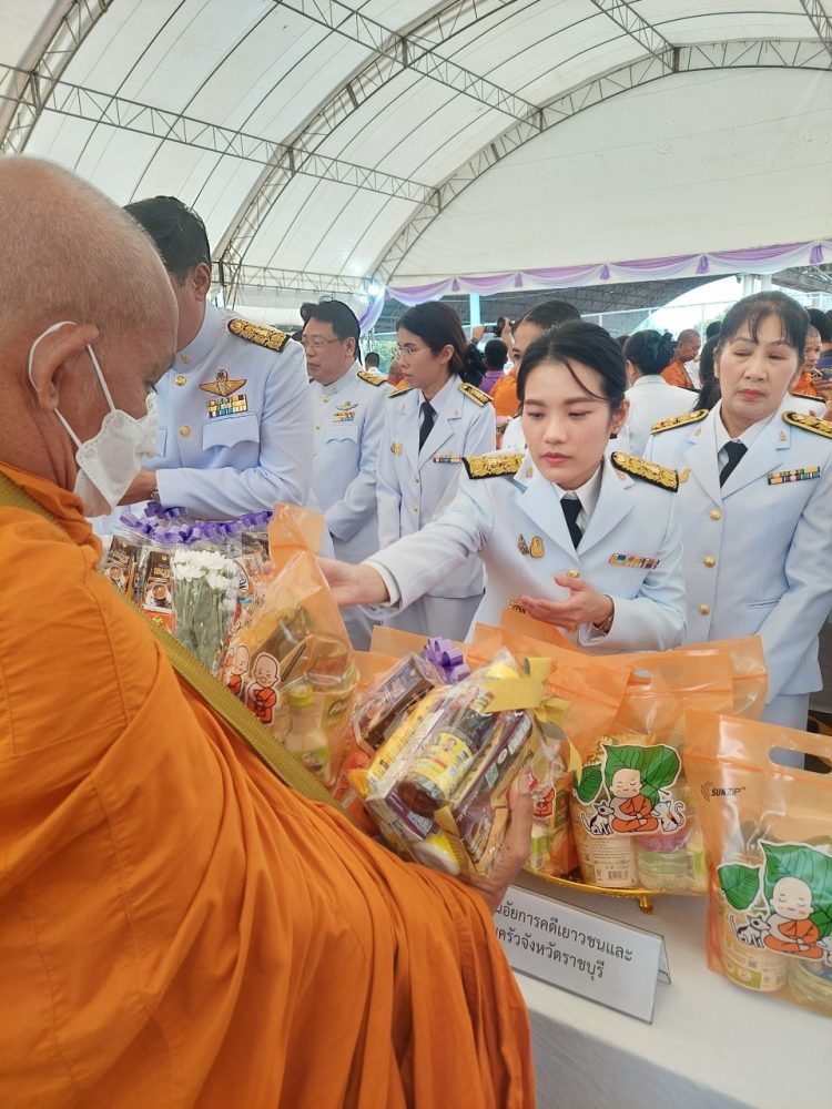 นางสาวมุ่งหมาย ซื่อตรง อัยการจังหวัดคดีเยาวชนและครอบครัวจังหวัดราชบุรี พร้อมคณะ เข้าร่วมพิธีทำบุญตักบาตรถวายพระราชกุศลและพิธีถวายเครื่องราชสักการะและวางพานพุ่ม และพิธีจุดเทียนถวายพระพรชัยมงคล เฉลิมพระเกียรติสมเด็จพระนางเจ้าฯ พระบรมราชินี เนื่องในโอกาสวันเฉลิมพระชนมพรรษา 3 มิถุนายน 2566 ณ อาคารโรงยิมเนเซี่ยมจังหวัดราชบุรี อำเภอเมืองราชบุรี จังหวัดราชบุรี