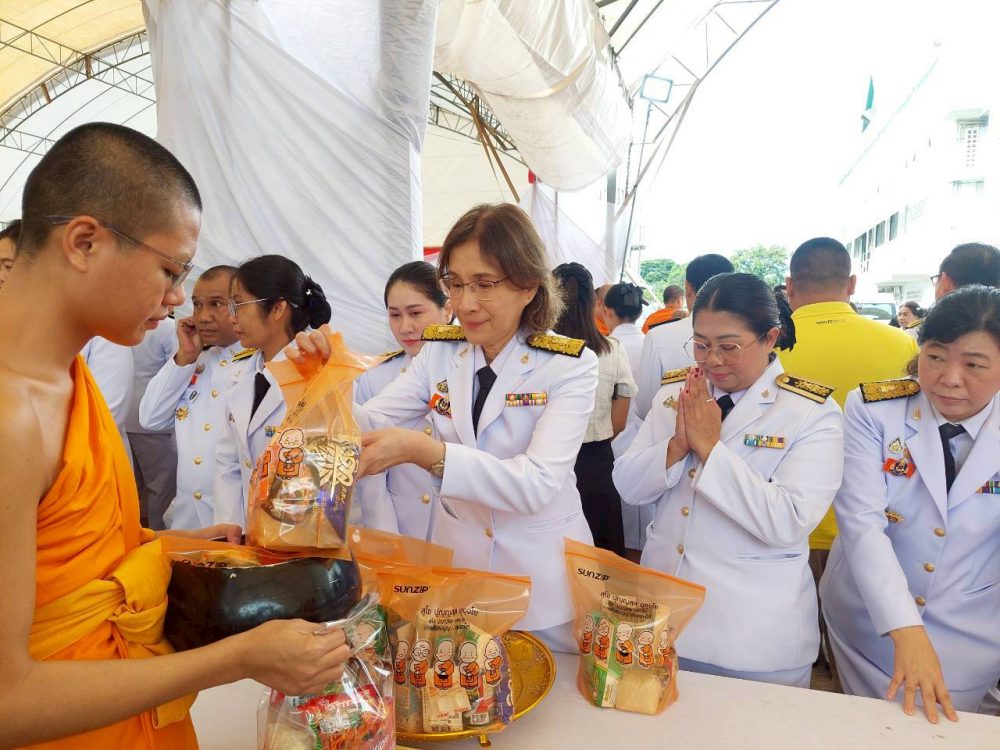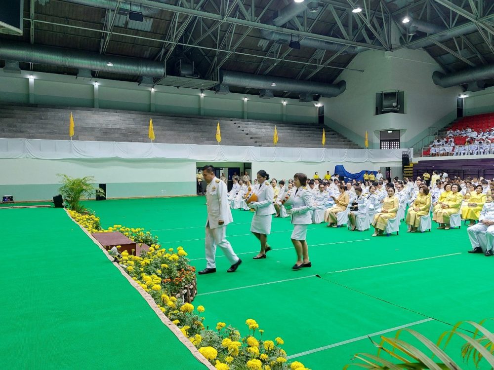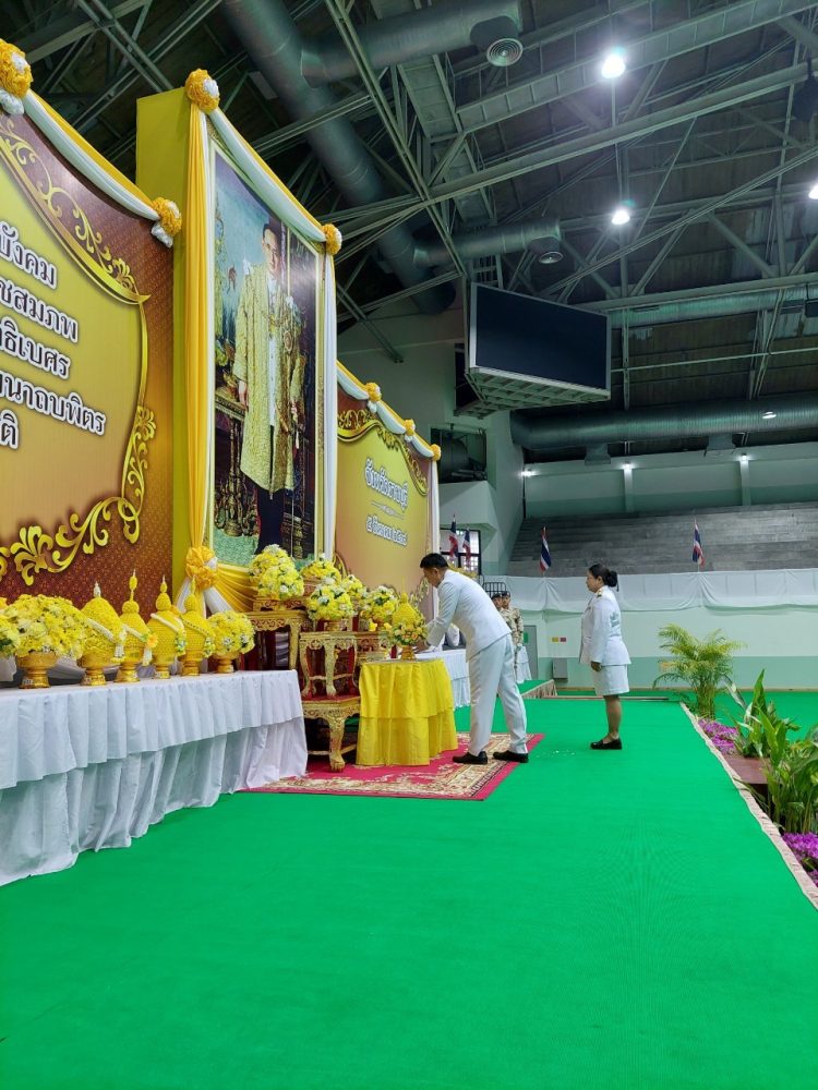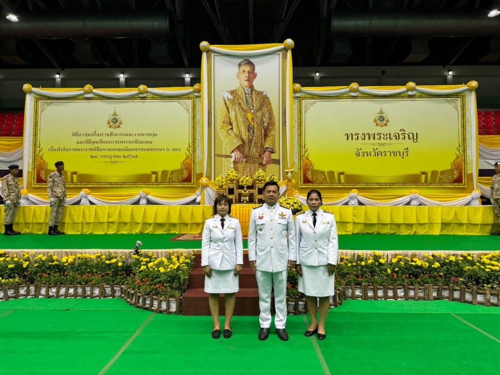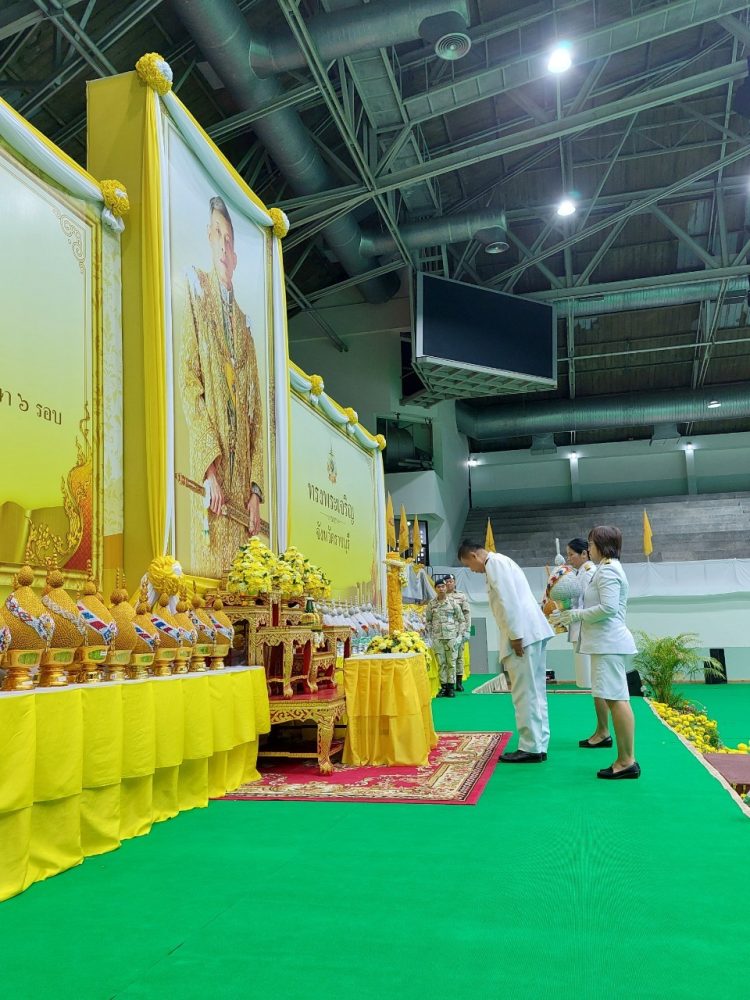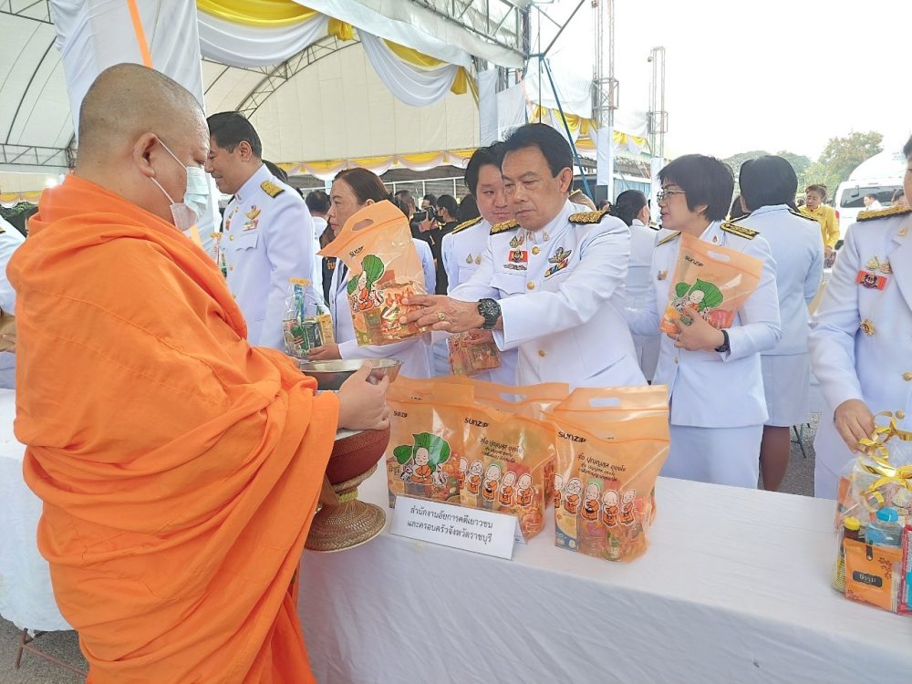 นางสาวมุ่งหมาย ซื่อตรง อัยการจังหวัดคดีเยาวชนและครอบครัวจังหวัดราชบุรี พร้อมคณะ เข้าร่วมพิธีทำบุญตักบาตรถวายพระราชกุศลและพิธีถวายเครื่องราชสักการะและวางพานพุ่ม และพิธีจุดเทียนถวายพระพรชัยมงคล เฉลิมพระเกียรติพระบาทสมเด็จพระเจ้าอยู่หัว เนื่องในโอกาสวันเฉลิมพระชนมพรรษา 28 กรกฎาคม 2566 ณ อาคารโรงยิมเนเซี่ยมจังหวัดราชบุรี อำเภอเมืองราชบุรี จังหวัดราชบุรี