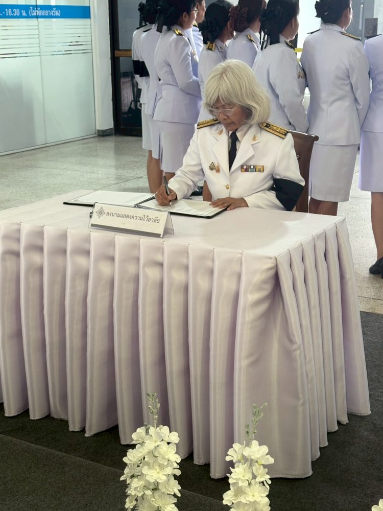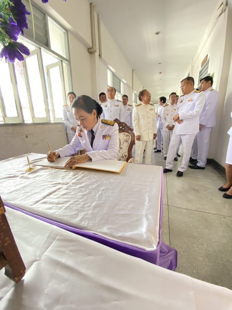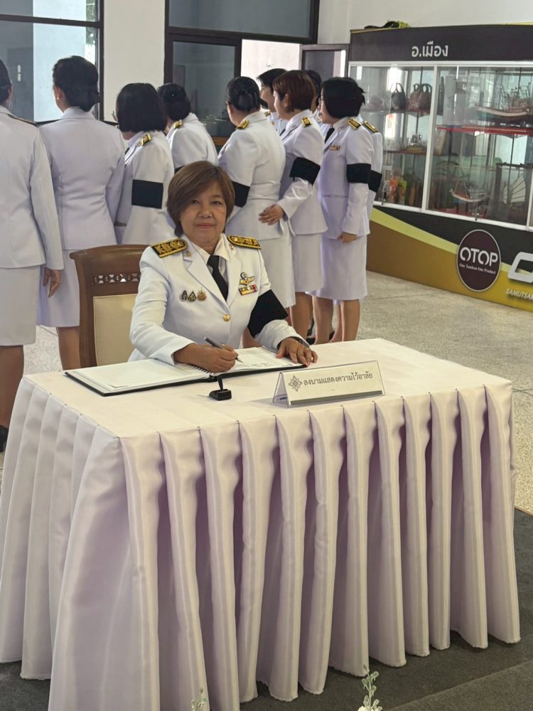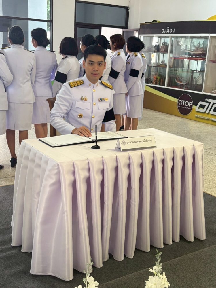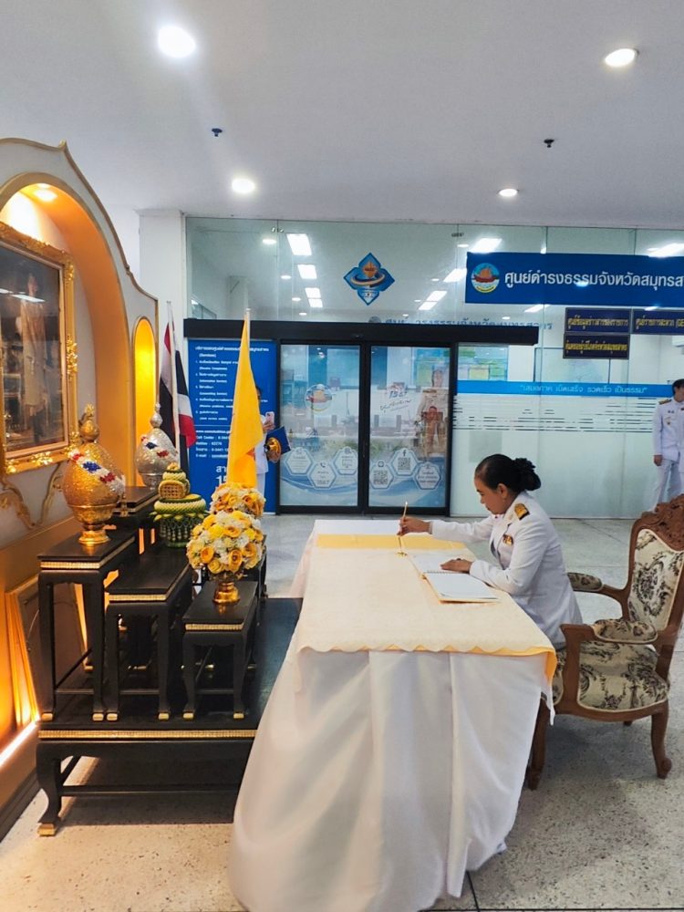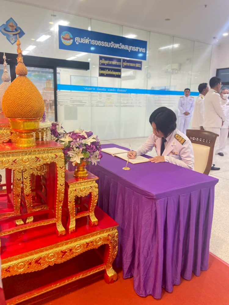 – นางสาวกฤติกา กิติยานันท์ อัยการจังหวัดคดีเยาวชนและครอบครัวจังหวัดสมุทรสาคร พร้อมคณะร่วมพิธีลงนามถวายความอาลัยแด่ สมเด็จพระนางเจ้าสิริกิติ์ พระบรมราชินีนาถ พระบรมราชชนนีพันปีหลวง