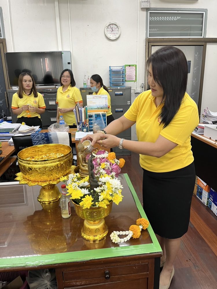 สำนักงานอัยการคดีเยาวชนและครอบครัวจังหวัดสมุทรสาคร จัดกิจกรรมสืบสานประเพณีสงกรานต์ สรงน้ำพระ รดน้ำขอพรผู้บังคับบัญชา เพื่อเป็นศิริมงคล
