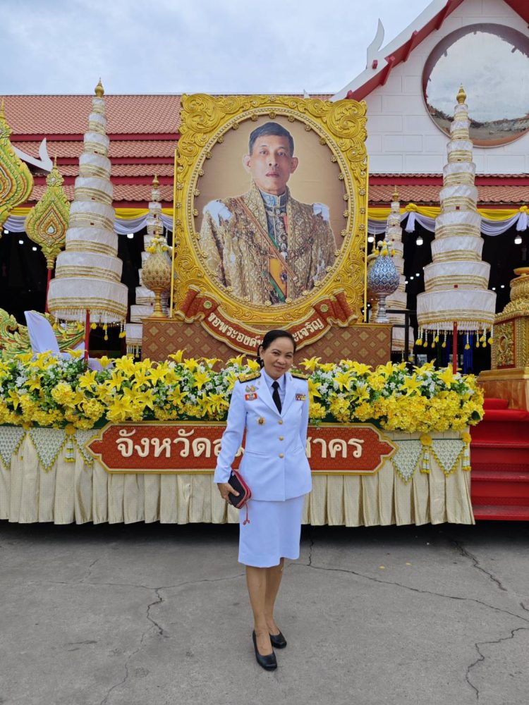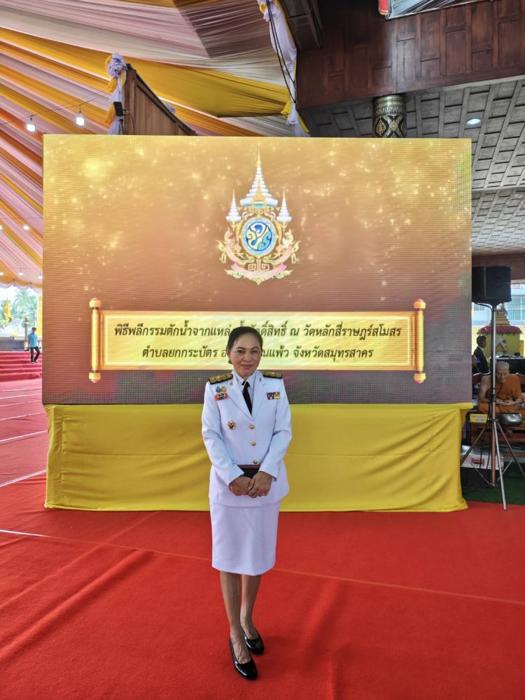 นางสาวดวงเดือน สุทธาชีพ อัยการจังหวัดคดีเยาวชนและครอบครัวจังหวัดสมุทรสาคร ร่วมงานสโมสรสันนิษบาตเฉลิมพระเกียรติพระบาทสมเด็จพระเจ้าอยู่หัว เนื่องในโอกาสพระราชพิธีมหามงคลเฉลิมพระชนมพรรษา 6 รอบ 28 กรกฎาคม 2567 จังหวัดสมุทรสาคร