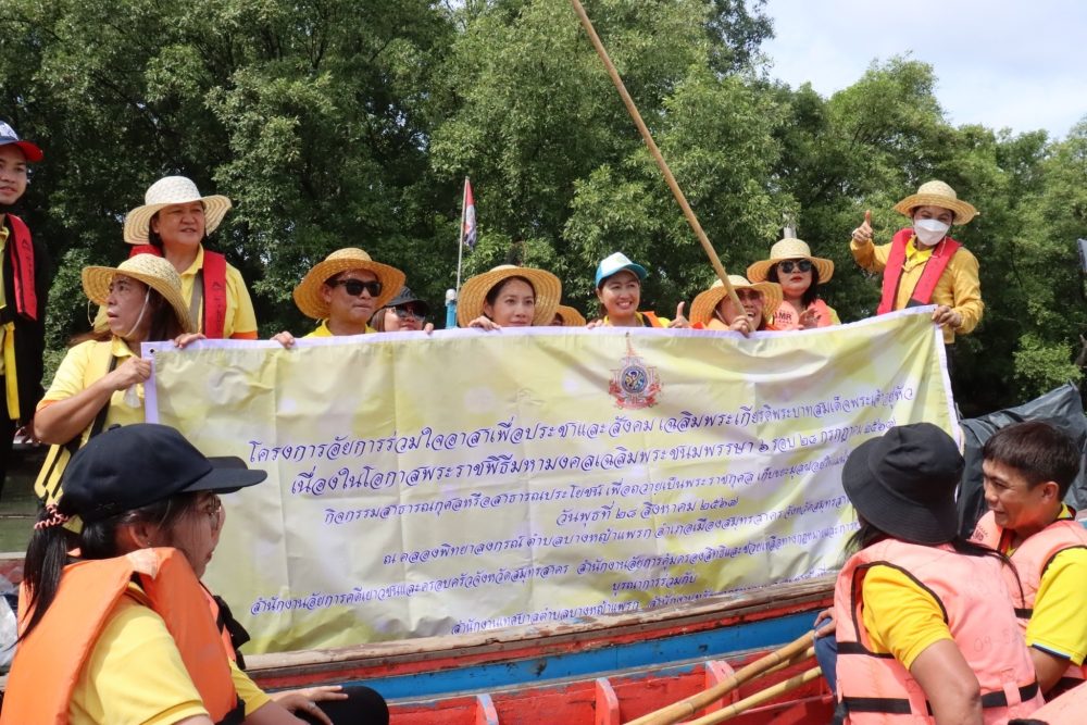 นางสาวดวงเดือน สุทธาชีพ อัยการจังหวัดคดีเยาวชนและครอบครัวจังหวัดสมุทรสาคร พร้อมบุคลากรสำนักงานอัยการคดีเยาวชนและครอบครัว จังหวัดสมุทรสาคร ร่วมกับสำนักงานอัยการคุ้มครองสิทธิและช่วยเหลือทางกฎหมายและการบังคับคดีจังหวัดสมุทรสาคร บูรณาการร่วมกับเทศบาล ตำบลบางหญ้าแพรก สำนักงานทรัพยาทางทะเลและชายฝั่งที่ 8 จัดกิจกรรมเฉลิมพระเกียรติพระบาทสมเด็จพระเจ้าอยู่หัวเนื่องในโอกาสพระราชพิธี มหามงคลเฉลิมพระชนมพรรษา 6 รอบ 28 กรกฎาคม 2567