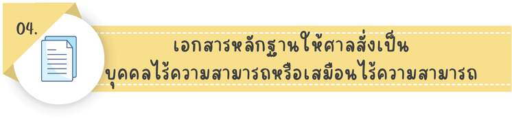 - การร้องขอให้ศาล สั่งให้เป็นบุคคลวิกลจริต เป็นคนไร้ความสามารถ และการร้องขอให้ศาล เพิกถอนคำสั่งให้เป็นคนไร้ความสามารถ (ป.พ.พ. มาตรา 28, 31)