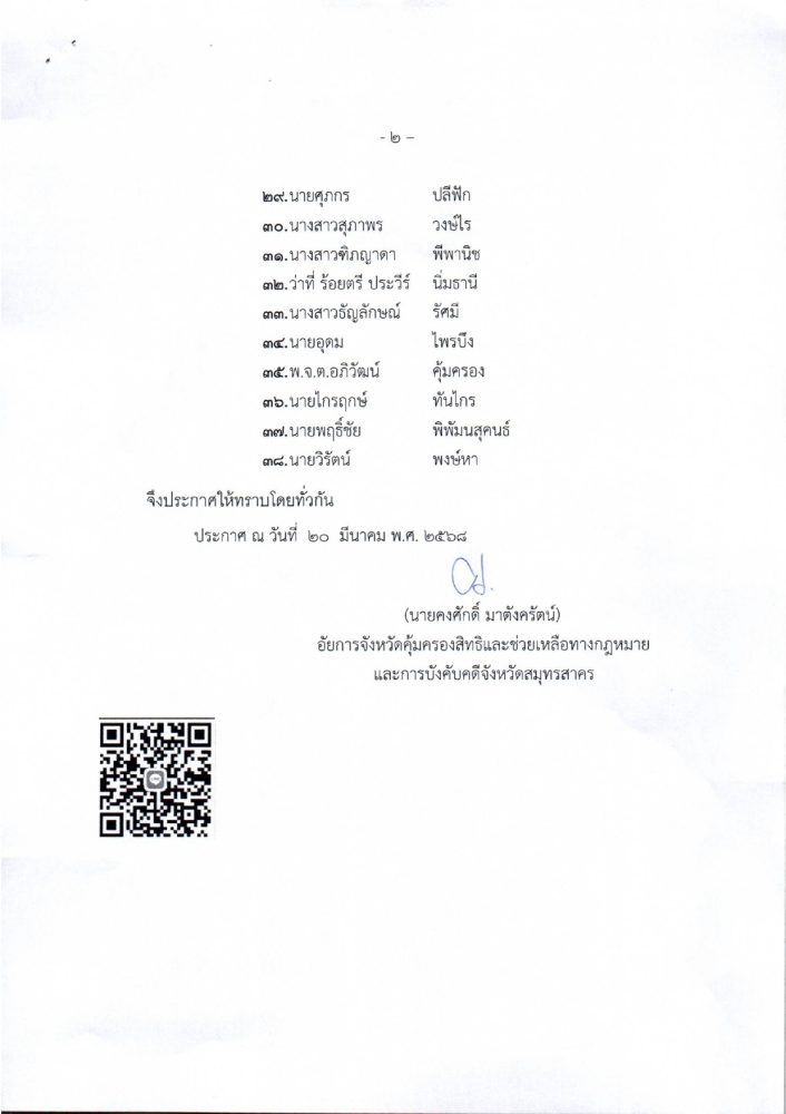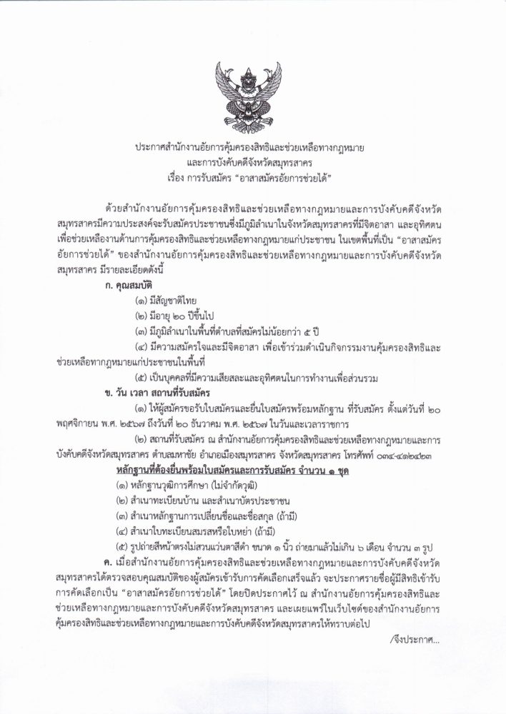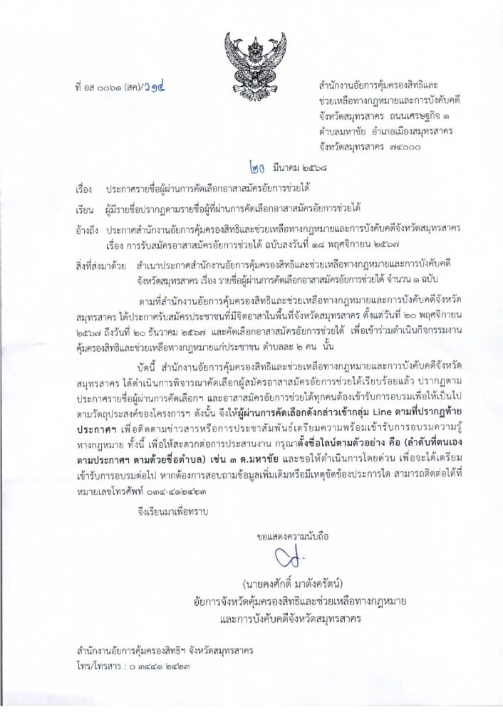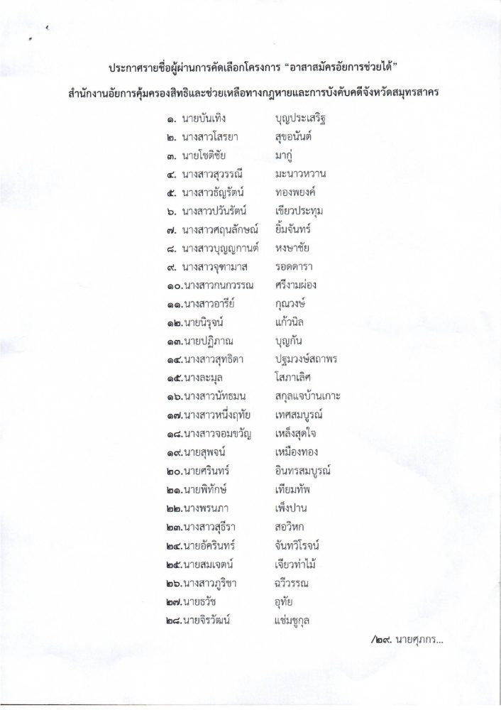 ประกาศรายชื่อผู้ผ่านการคัดเลือกอาสาสมัครอัยการช่วยได้