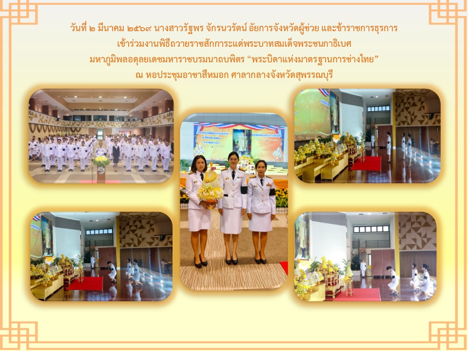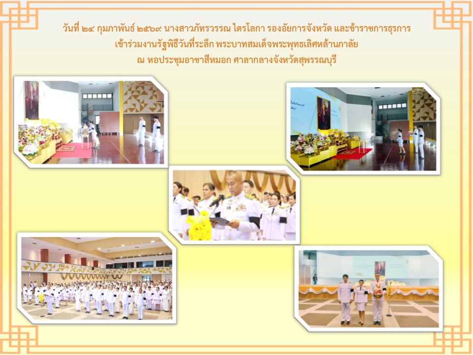 สำนักงานอัยการคดีศาลแชวงสุพรรณบุรี ได้เข้าร่วมพิธีวางพานพุ่มดอกไม้ถวายราชสักการะเนื่องในวันพระบาทสมเด็จพระพุทธยอดฟ้าจุฬาโลกมหาราชและวันที่ระลึกมหาจักรีบรมราชวงศ์” วันที่ ๖ เมษายน ๒๕๖๕ ณ หอประชุมองค์การบริหารส่วนจังหวัดสุพรรณบุรี