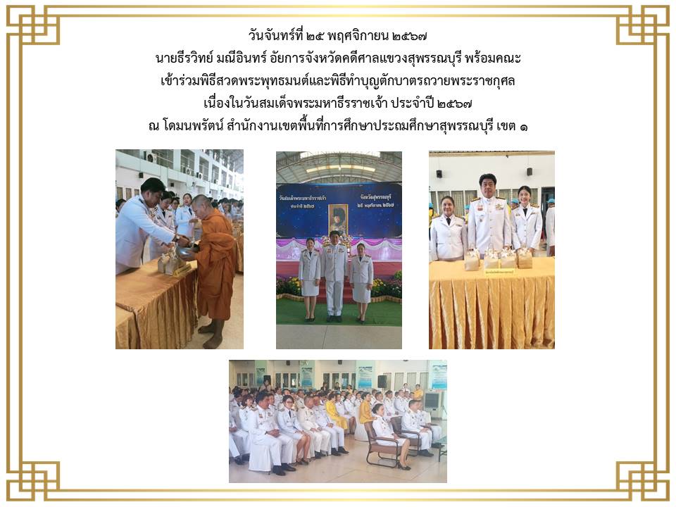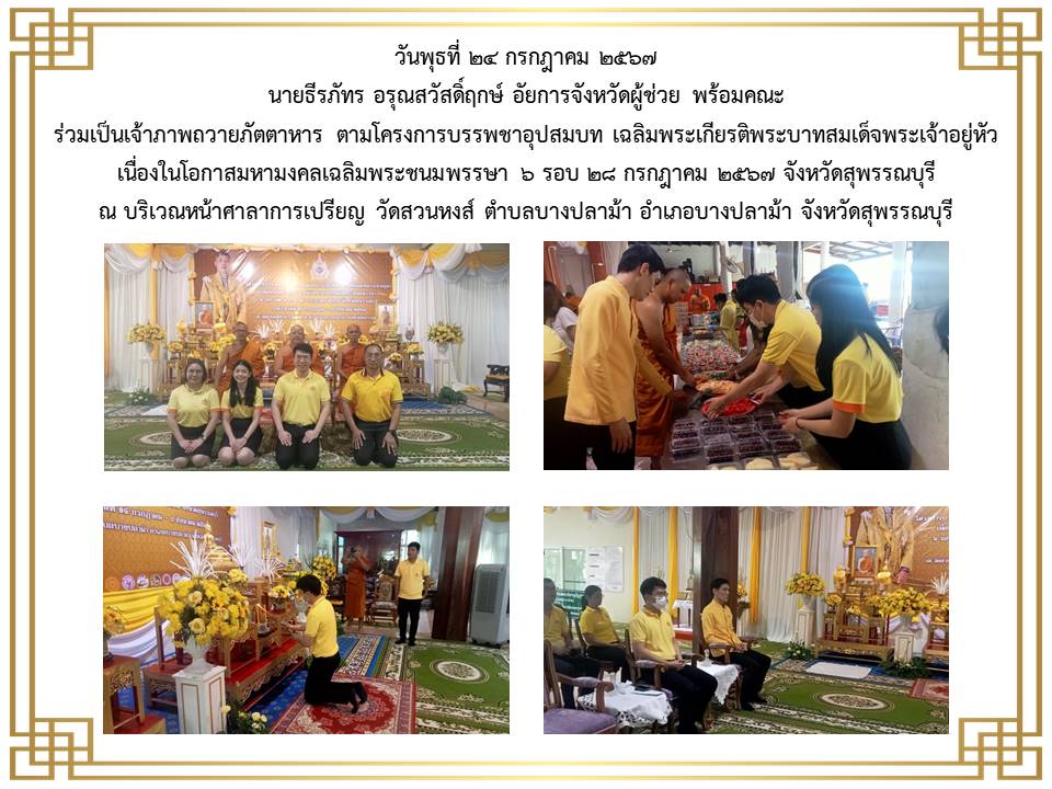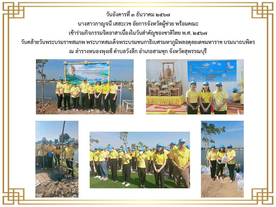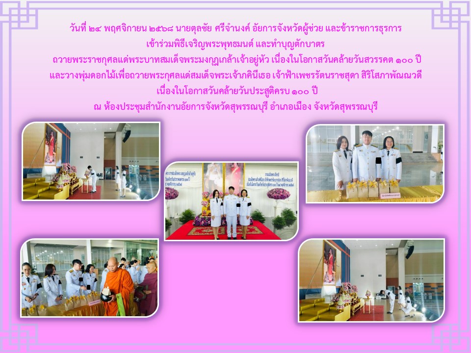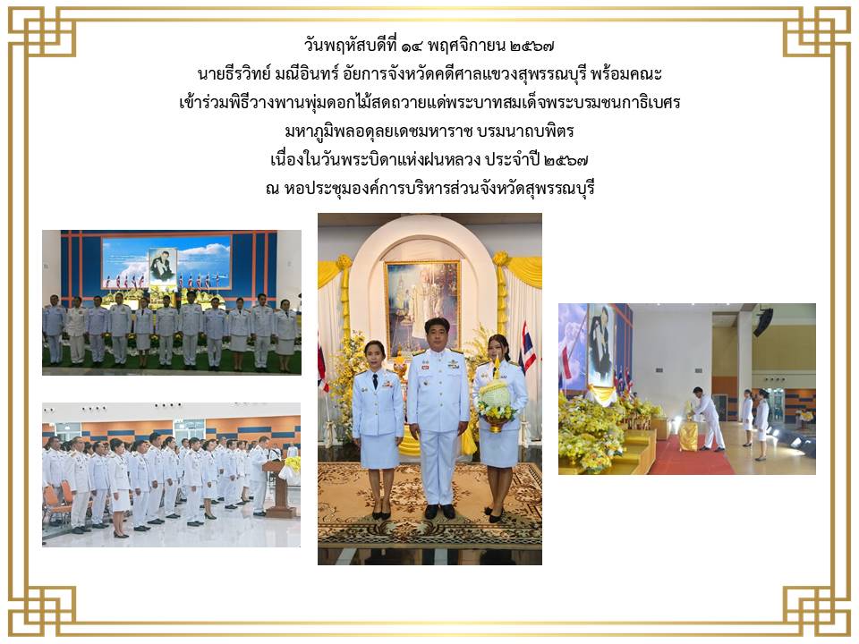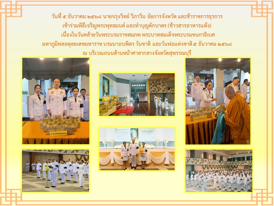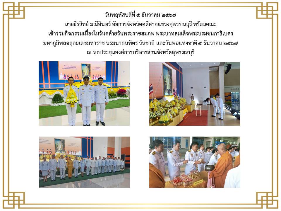 กิจกรรมเนื่องในวันคล้ายวันพระบรมราชสมภพ พระบาพสมเด็จพระบรมชนกาธิเบศร มพาภูมิพลอคุลยเคชมพาราช บรมนาถบหิตร วันชาติ และวันพ่อแห่งชาติ ๕ ธันวาคม ๒๕๒๔ ณ ศาลากลางจังหวัดสุพรรณบุรี