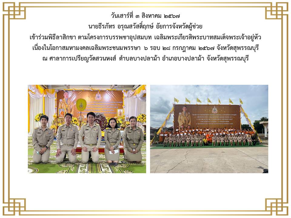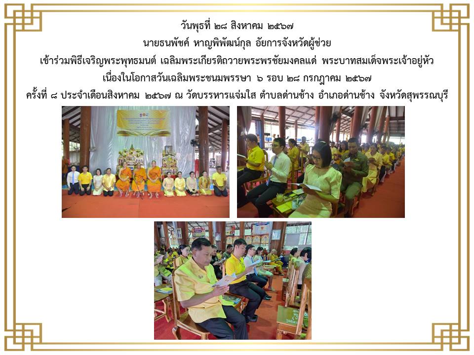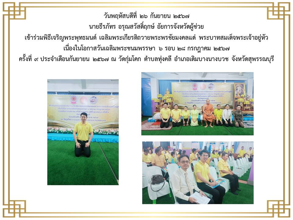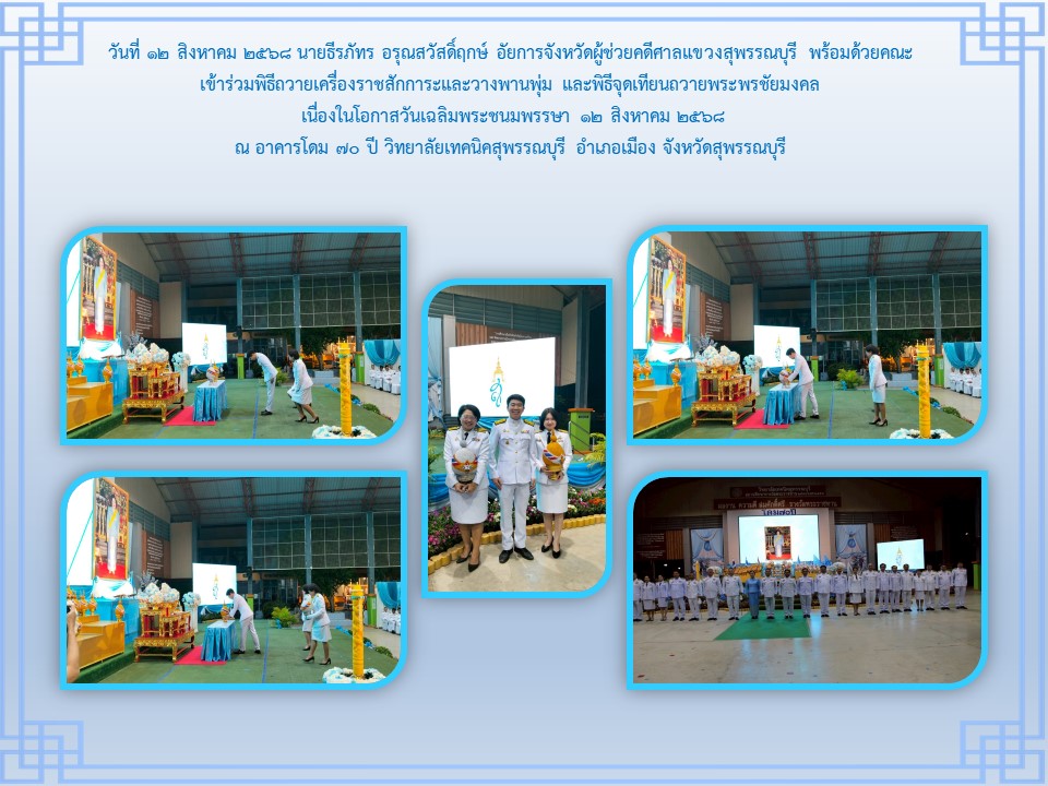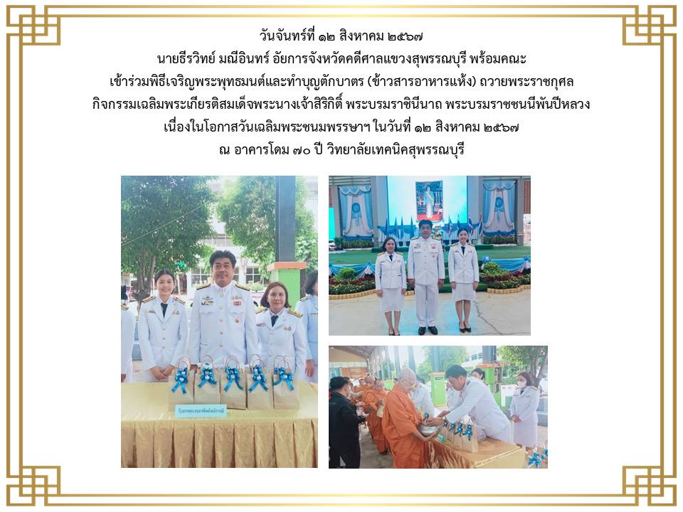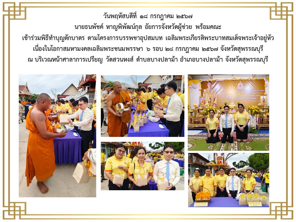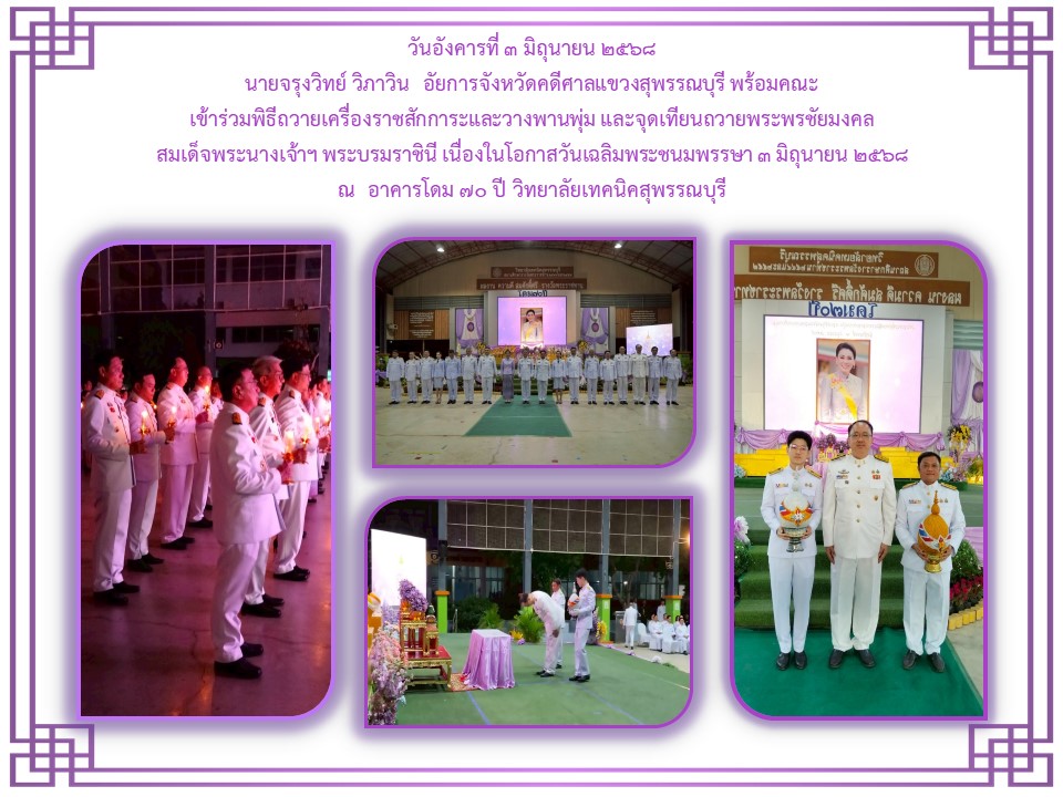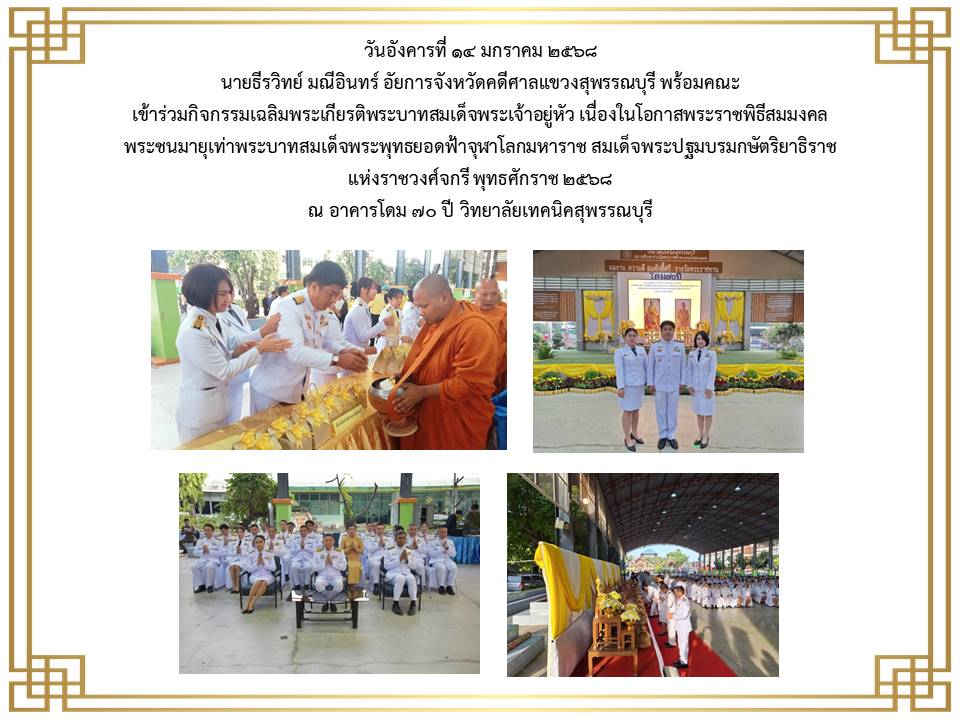 กิจกรรมเนื่องในวันคล้ายวันพระบรมราชสมภพ พระบาพสมเด็จพระบรมชนกาธิเบศร มพาภูมิพลอคุลยเคชมพาราช บรมนาถบหิตร วันชาติ และวันพ่อแห่งชาติ ๕ ธันวาคม ๒๕๒๔ ณ ศาลากลางจังหวัดสุพรรณบุรี