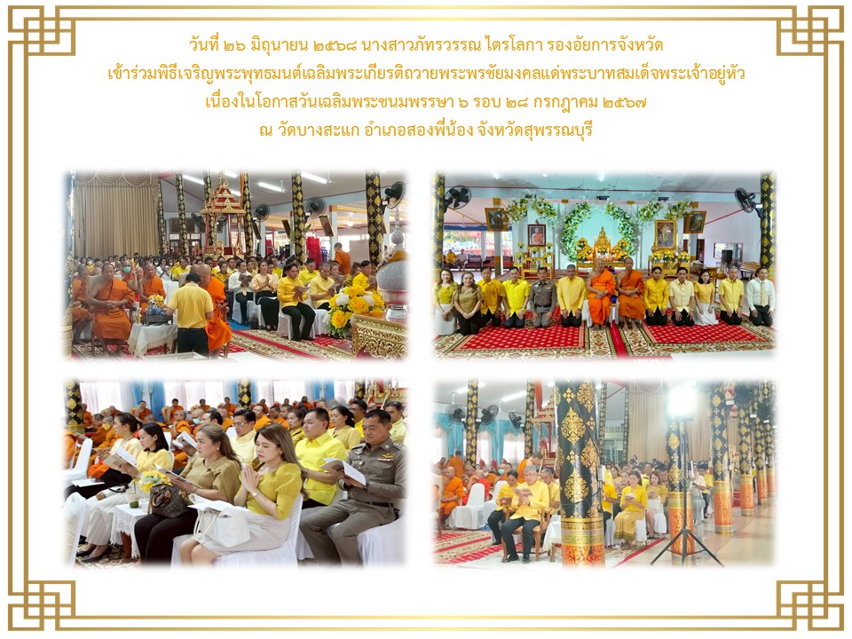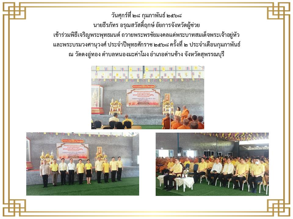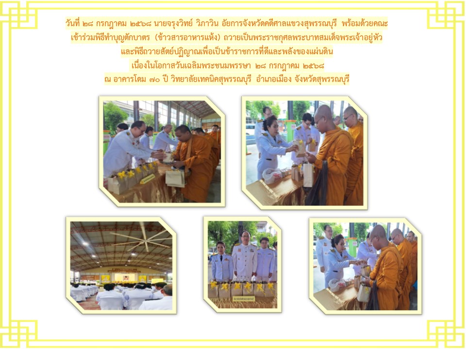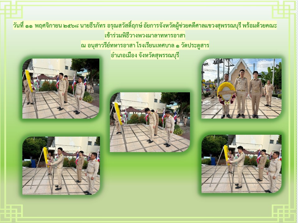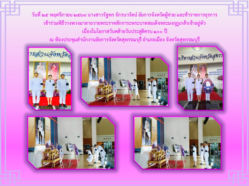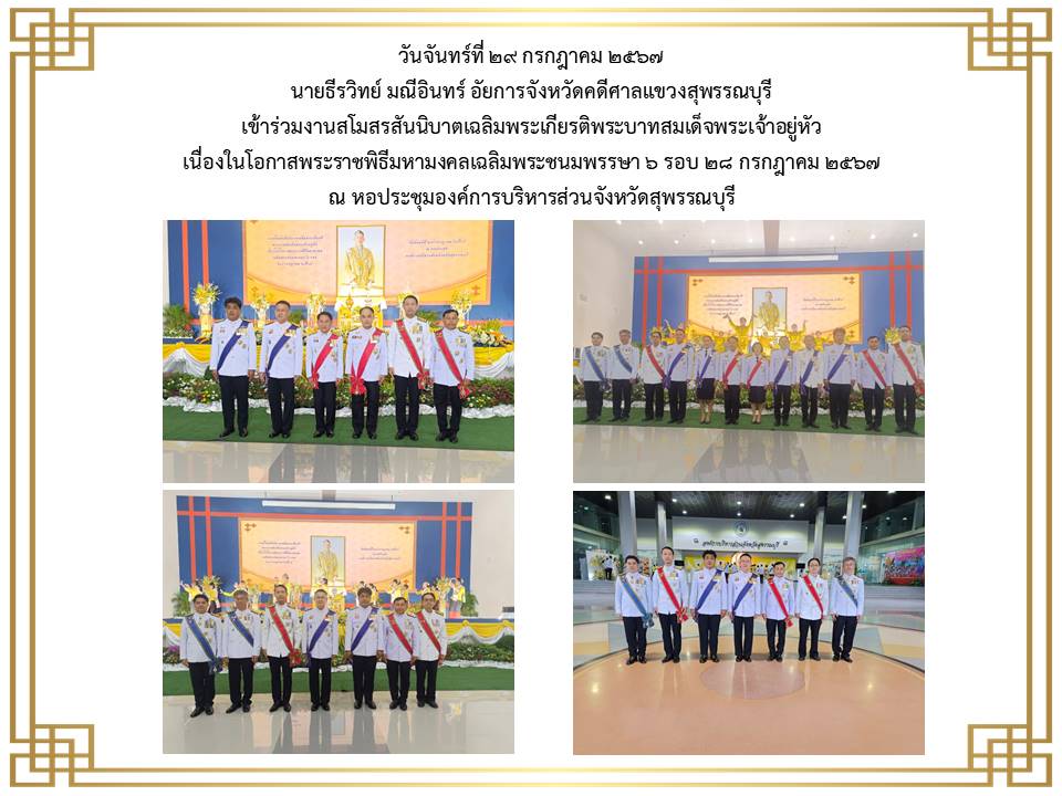 ข้าราชการฝ่ายอัยการและบุคคลากรของสำนักงานอัยการคดีศาลแขวงสุพรรณบุรี เข้าร่วมพิธีลงนามถวายพระพรชัยมงคล เนื่องในโอกาสวันเฉลิม พระชนมพระพรรษาพระบาทสมเด็จพระเจ้าอยู่หัว ประจำปีพุทธศักราช ๒๕๖๕