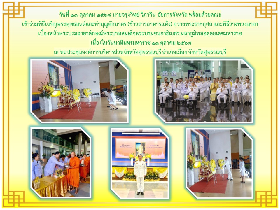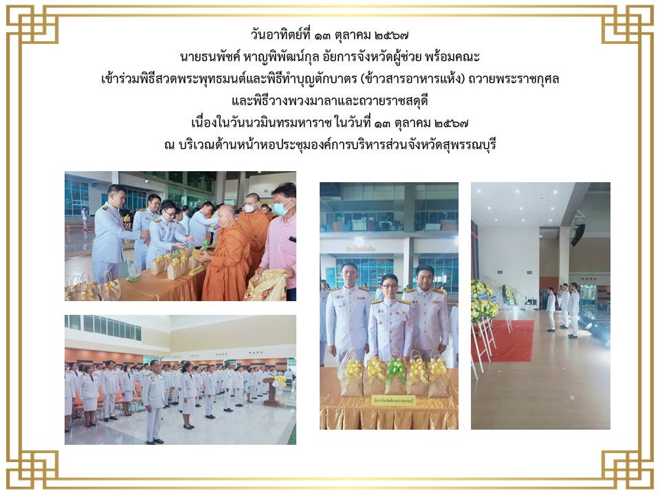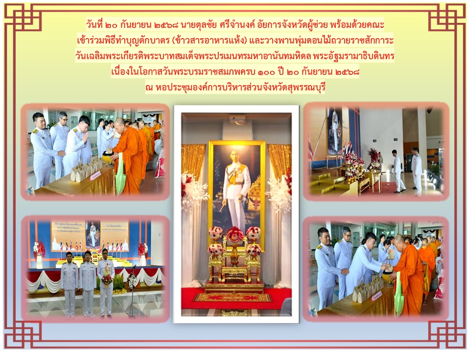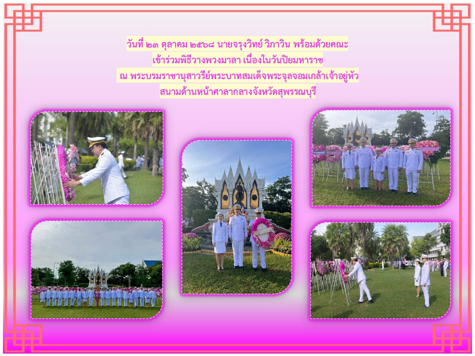 กิจกรรมเนื่องในวันคล้ายวันสวรรคตพระบาทสมเด็จพระจุลจอมเกลำาเจ้าอยู่หัว วันเสาร์ที่ ๒๓ ตุลาคม ๒๕๖๔ ณ พระบรมราชานุสาวรีย์พระบาทสมเด็จพระจุลจอมเกล้าเจ้าอยู่หัว สนามด้านหน้าศาลากลางจังหวัดสุพรรณบุรี
