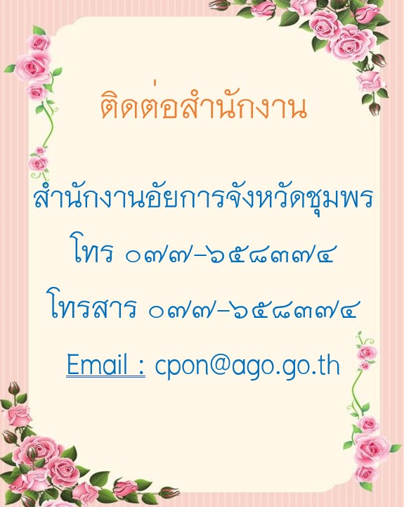 - ประกาศสำนักงานอัยการจังหวัดชุมพร เรื่อง ประกวดราคาจ้างก่อสร้างก่อสร้างโรงจอดรถสำนักงานอัยการจังหวัดชุมพร ด้วยวิธีประกวดราคาอิเล็กทรอนิกส์ (e-bidding) อ่านรายละเอียด