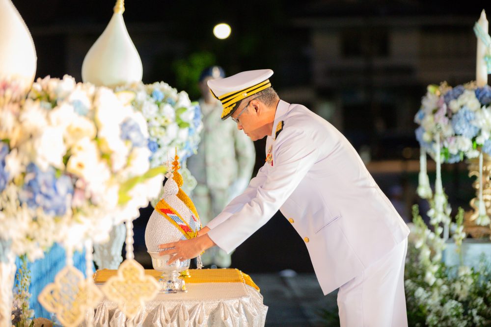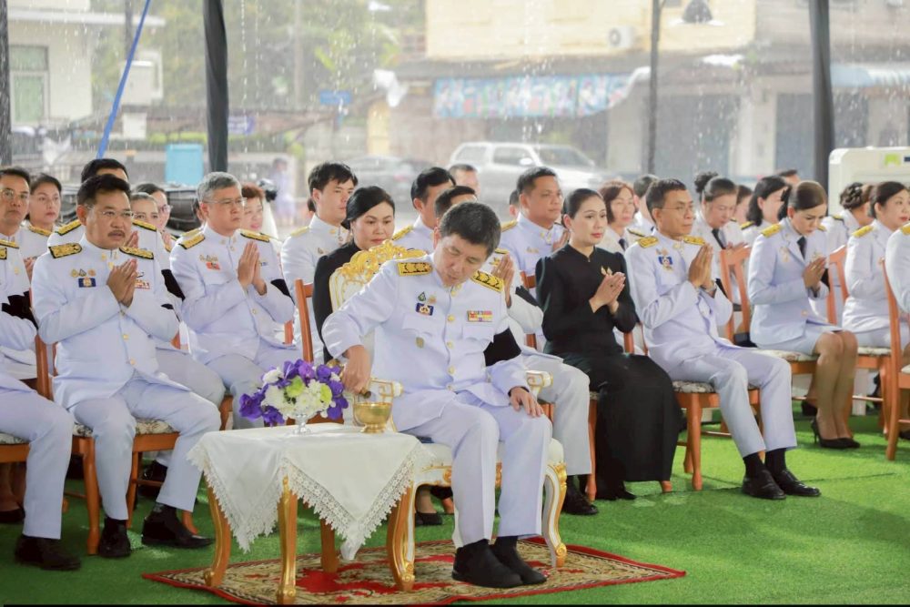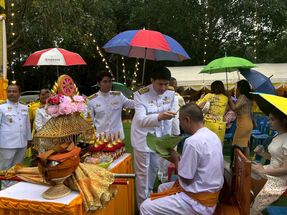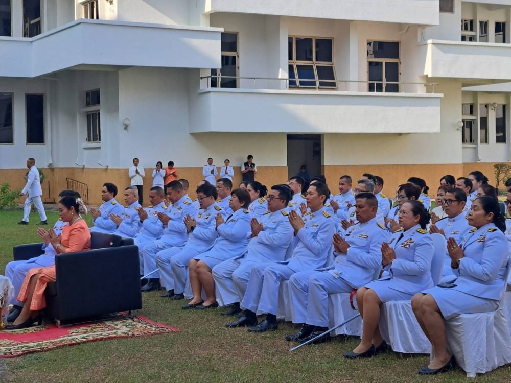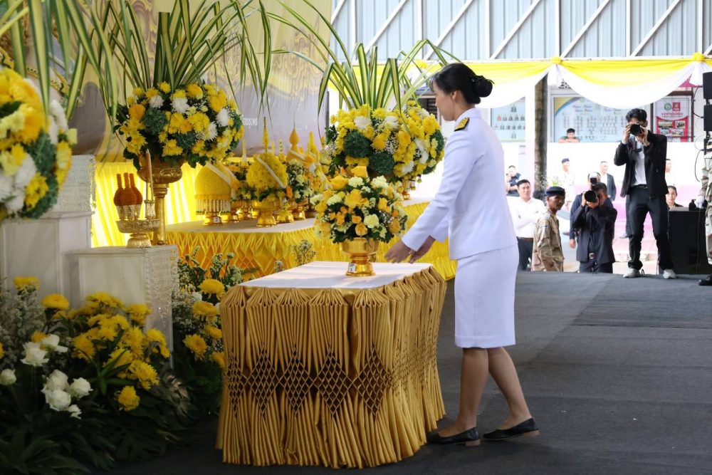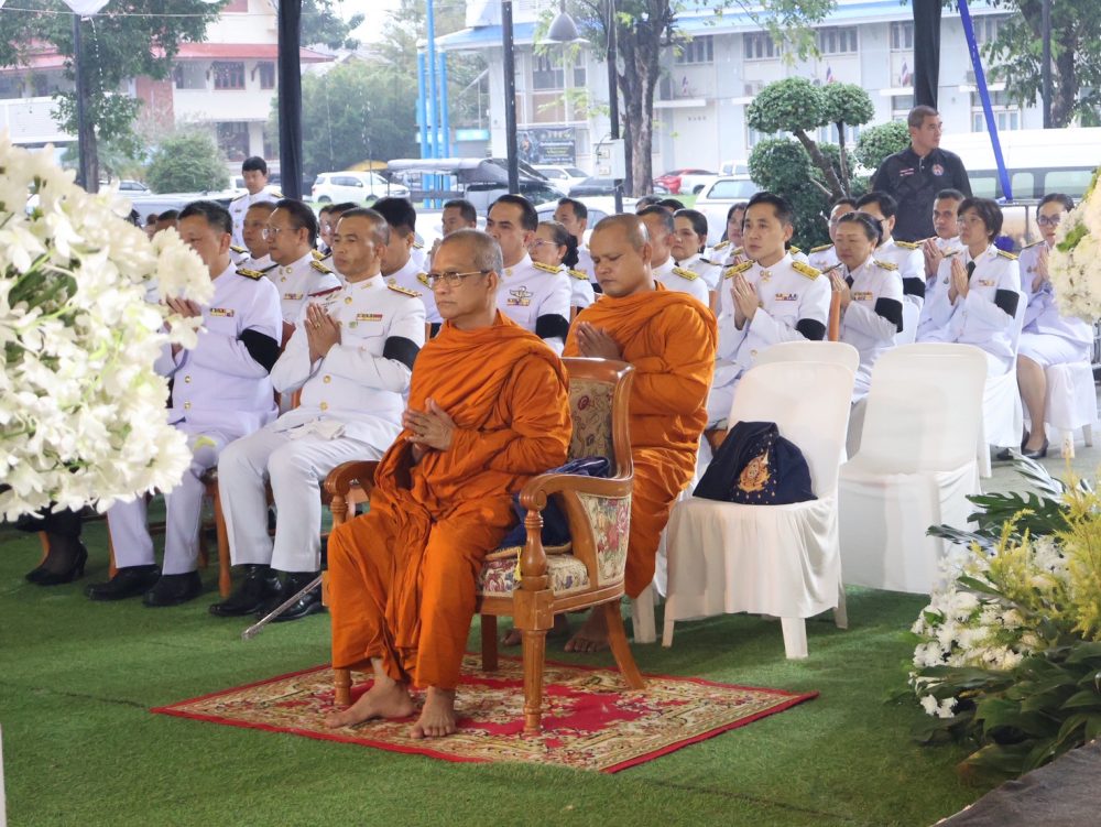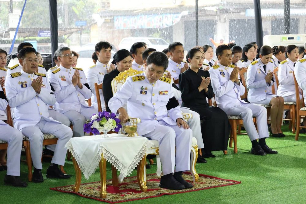 นายณัฐพงศ์ บุญทองคง อัยการจังหวัดชุมพร และคณะ ร่วมพิธีการทางศาสนาและพิธีบวงสรวง เวลา 06.30 น. ณ พระตำหนัก พลเรือเอกพระเจ้าบรมวงศ์เธอ