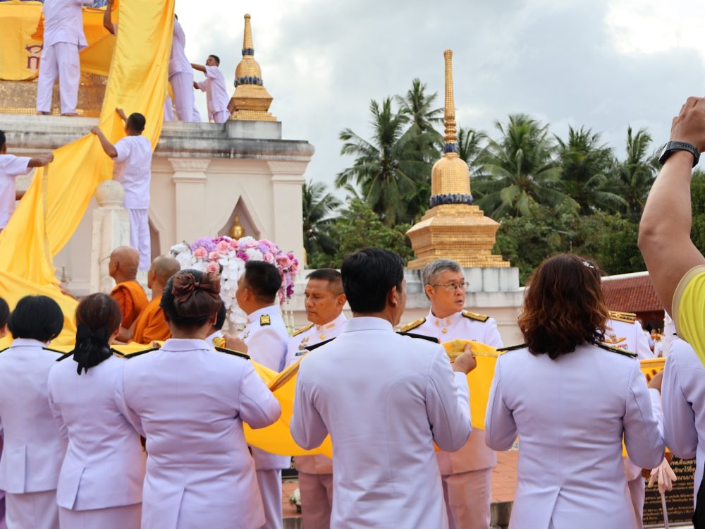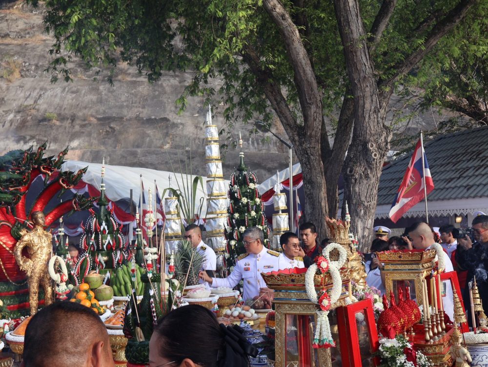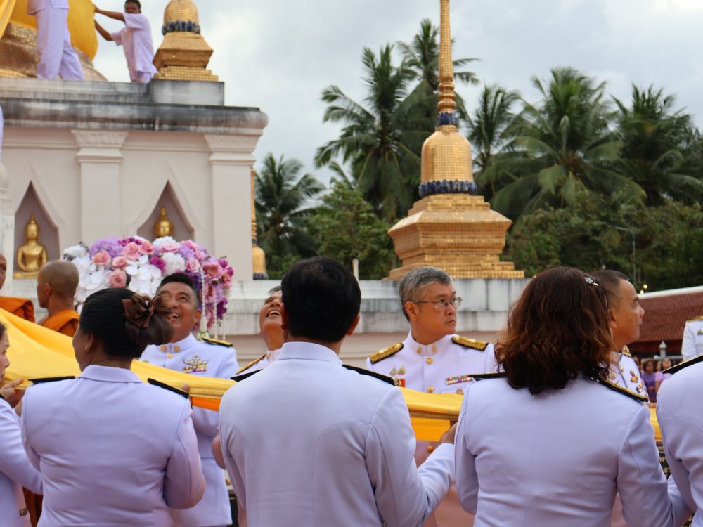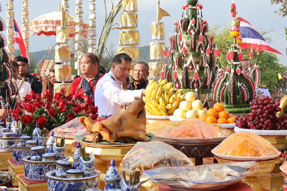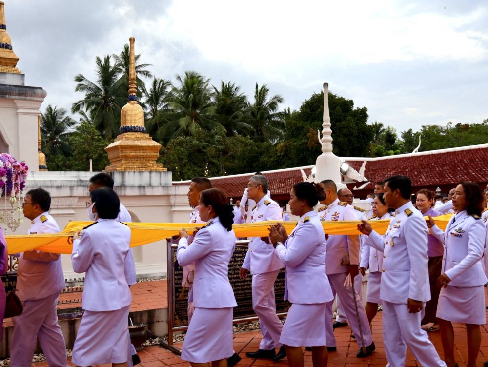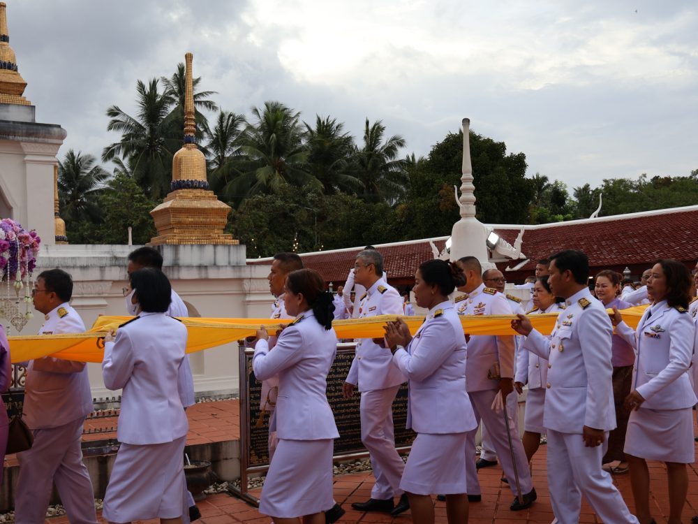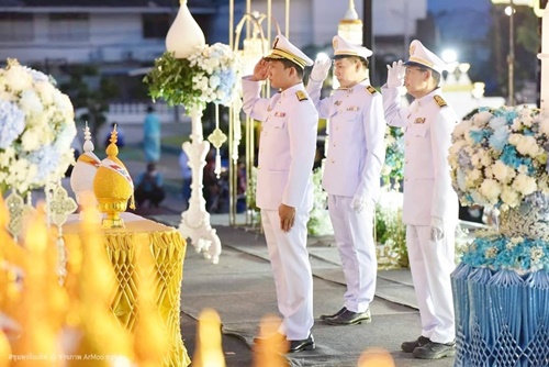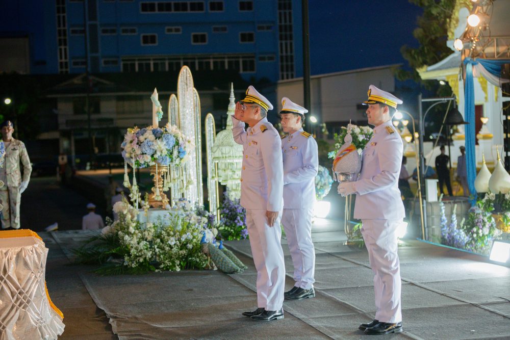 นายณัฐพงศ์ บุญทองคง อัยการจังหวัดชุมพร และคณะ ร่วมพิธีการทางศาสนาและพิธีบวงสรวง เวลา 06.30 น. ณ พระตำหนัก พลเรือเอกพระเจ้าบรมวงศ์เธอ