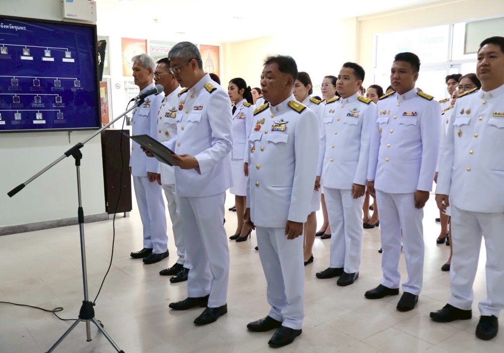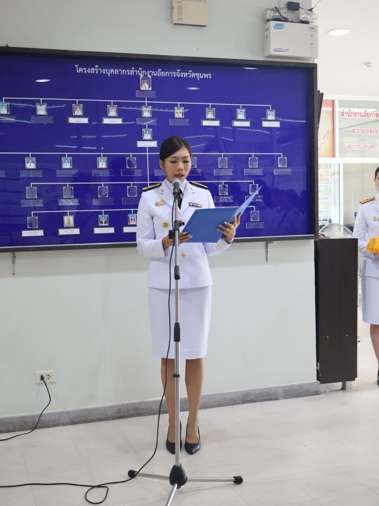พิธีถวายสัตย์ปฏิญาณเพื่อเป็นข้าราชการที่ดีและพลังของแผ่นดิน ณ บริเวณห้องโถง อาคารสำนักงานอัยการจังหวัดชุมพร ชั้น ๑