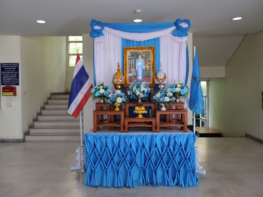 สมเด็จพระนางเจ้าสุทิดา พัชรสุธาพิมลลักษณ์ พระบรมราชินี ณ บริเวณห้องโถง ชั้น ๑ อาคารสำนักงานอัยการจังหวัดชุมพร