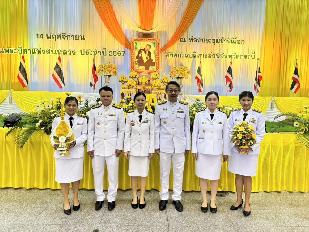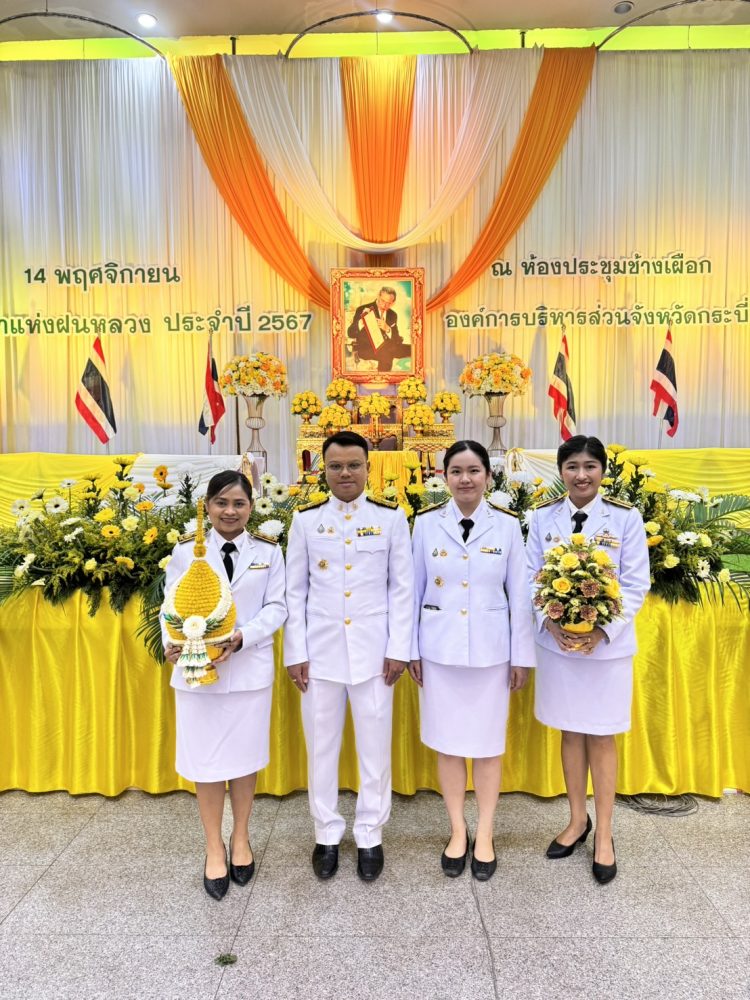 กิจกรรม ร่วมวางพานพุ่มดอกไม้สด เนื่องในวันพระบิดาแห่งฝนหลวง ในวันที่ 14 พฤศจิกายน 2567 ณ ห้องประชุมช้างเผือก องค์การบริหารส่วนจังหวัดกระบี่