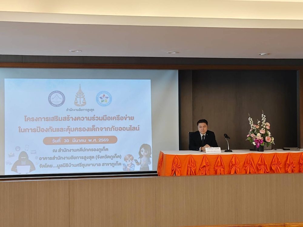 วันจันทร์ที่ ๓๐ มีนาคม ๒๕๖๙ นายวิษณุ หาญนัทธี อธิบดีอัยการ สำนักงานคดีแรงงานภาค ๘ เป็นประธานกล่าวเปิดงาน “โครงการเสริมสร้างความร่วมมือเครือข่ายในการป้องกันและคุ้มครองเด็กจากภัยออนไลน์” ของมูลนิธิบ้านศรีชุมพาบาล ณ ห้องประชุมสำนักงานคดีปกครองภูเก็ต อำเภอเมือง จังหวัดภูเก็ต