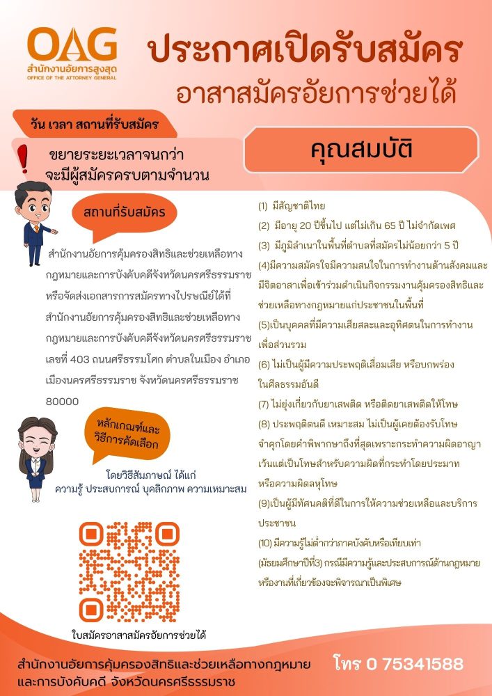 สถานที่ตั้ง : อาคารสำนักงานอัยการจังหวัดนครศรีธรรมราช ถนนศรีธรรมโศก