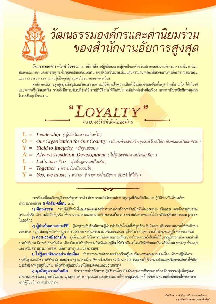 “องค์กรนำในการใช้กฎหมาย เพื่อรักษาความยุติธรรมให้กับประชาชนและสังคม”
