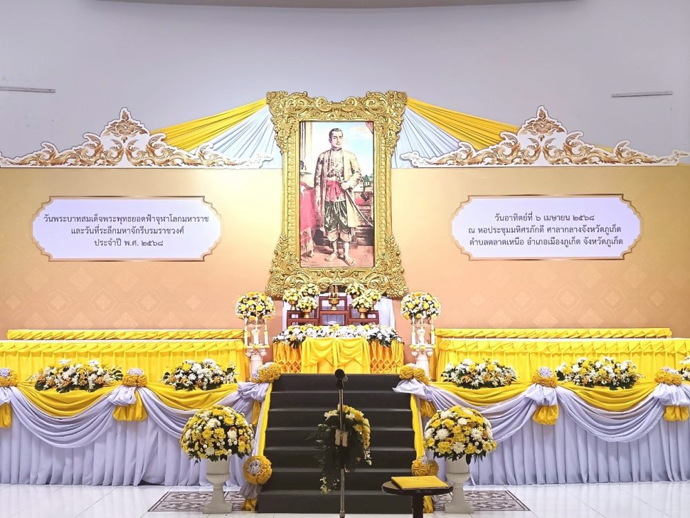 วันอาทิตย์ที่ ๖ เมษายน ๒๕๖๘ เวลา ๐๘.๐๐ น. นางทักษพร วิมลพันธุ์ อัยการผู้เชี่ยวชาญพิเศษ พร้อมด้วยข้าราชการธุรการ ร่วมพิธีวางพุ่มดอกไม้ถวายราชสักการะเนื่องในวันพระบาทสมเด็จพระพุทธยอดฟ้าจุฬาโลกมหาราช และวันที่ระลึกมหาจักรีบรมราชวงศ์ ประจำปี พ.ศ. ๒๕๖๘ ณ หองประชุมมหิศรภักดี ศาลากลางจังหวัดภูเก็ต