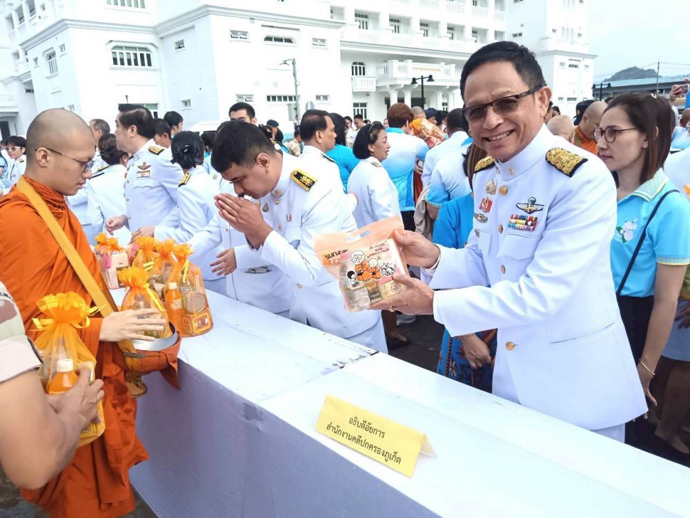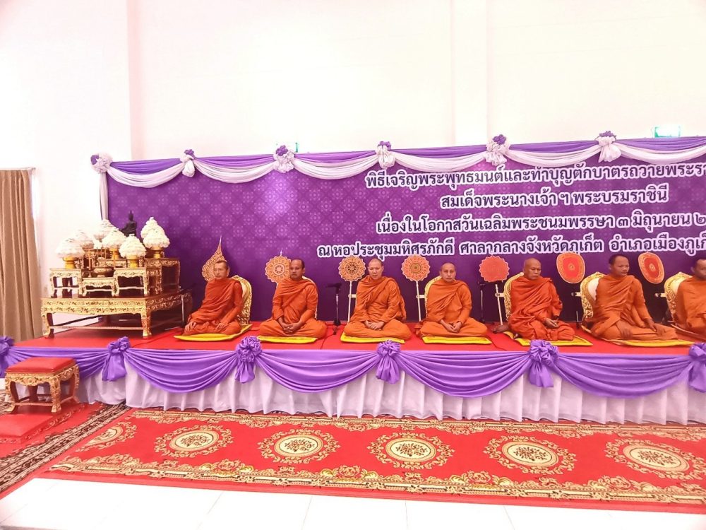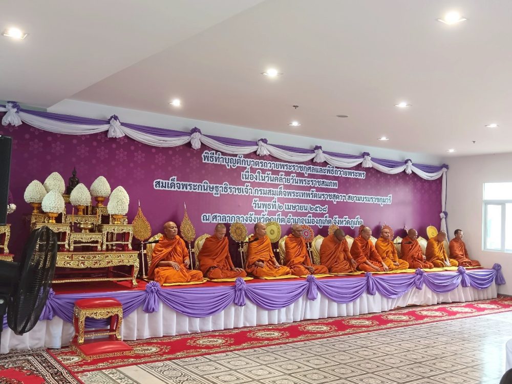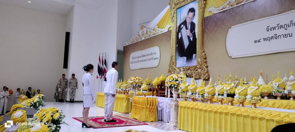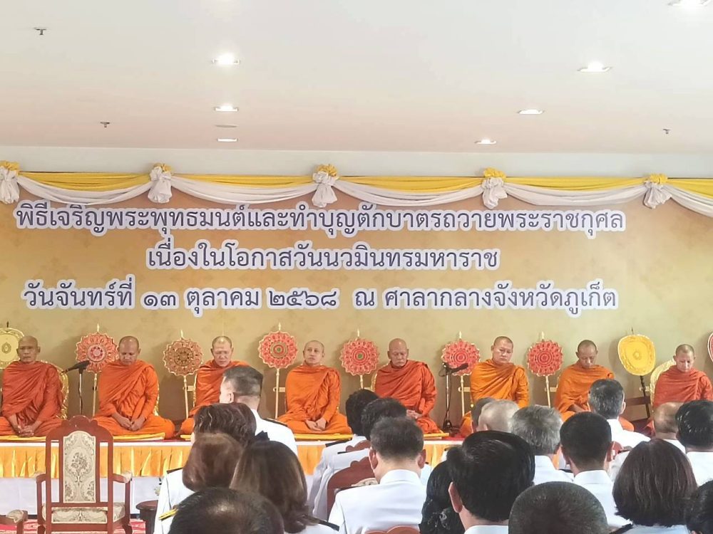 ๑. พิธีเจริญพระพุทธมนต์ ณ บริเวณโถงอาคารศาลากลางจังหวัดภูเก็ต ชั้น ๑ และพิธีพิธีทำบุญตักบาตรถวายพระราชกุศล ณ บริเวณหน้าหอประชุมมหิศรภักดี ศาลากลางจังหวัดภูเก็ต