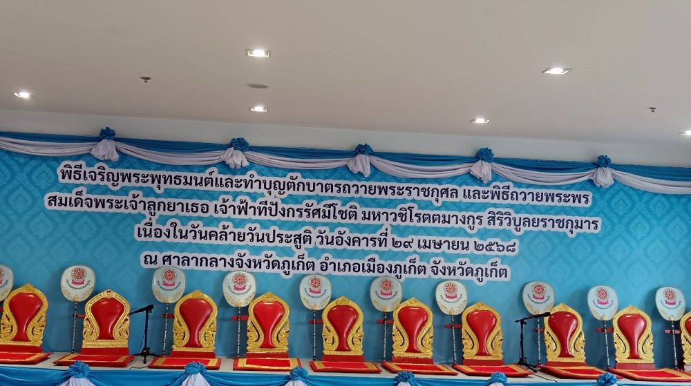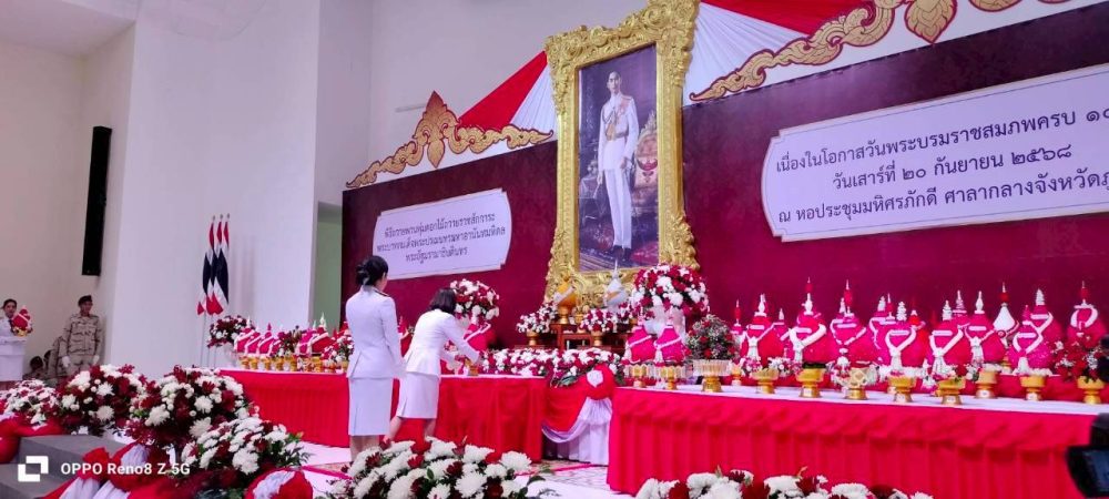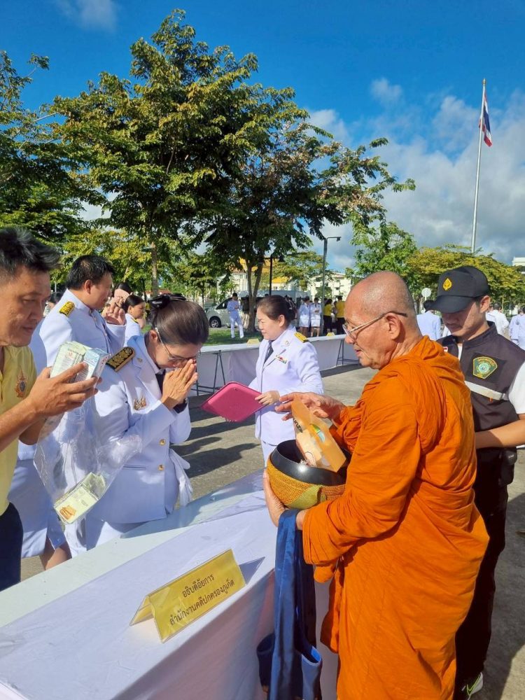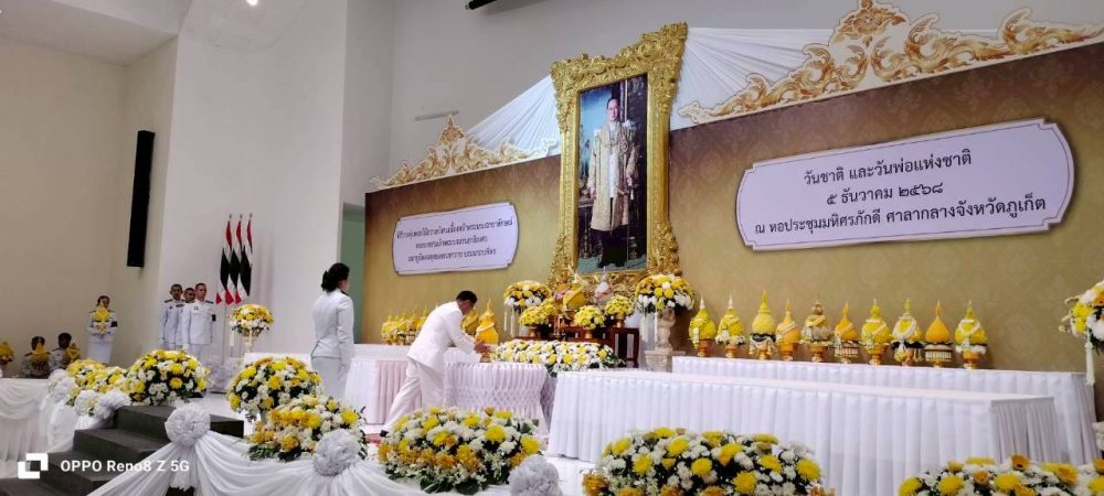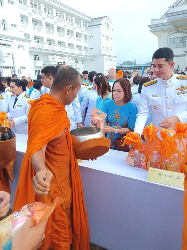 ๑. พิธีเจริญพระพุทธมนต์ ณ บริเวณโถงอาคารศาลากลางจังหวัดภูเก็ต ชั้น ๑ และพิธีพิธีทำบุญตักบาตรถวายพระราชกุศล ณ บริเวณหน้าหอประชุมมหิศรภักดี ศาลากลางจังหวัดภูเก็ต