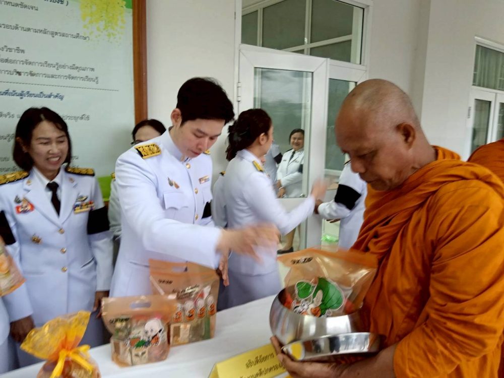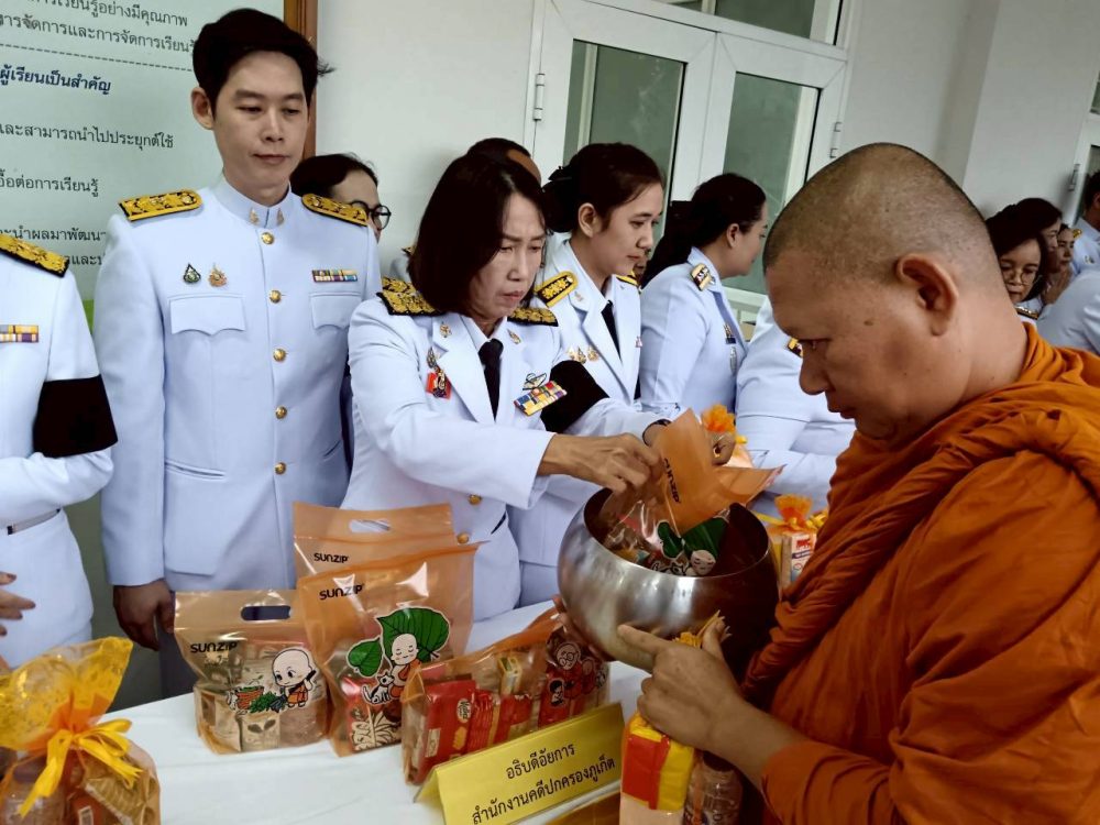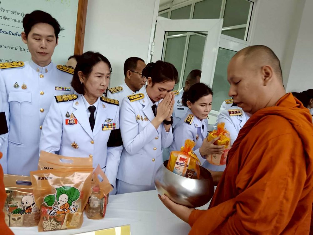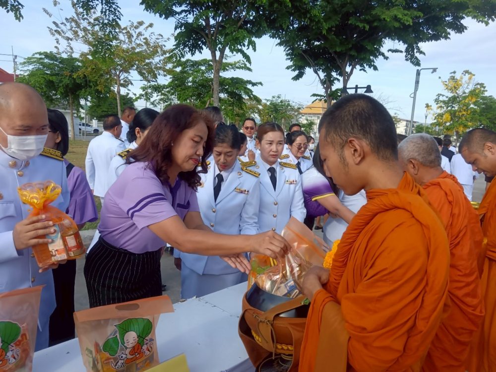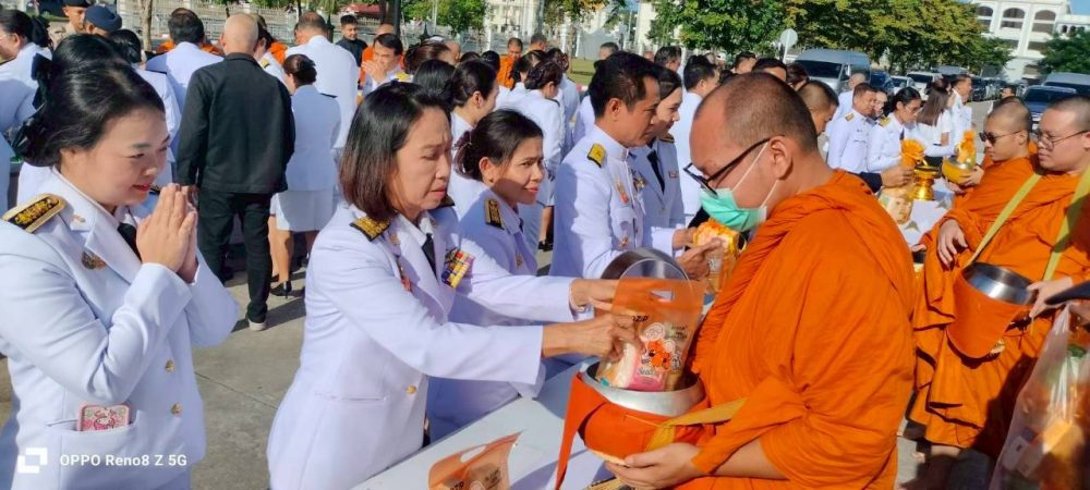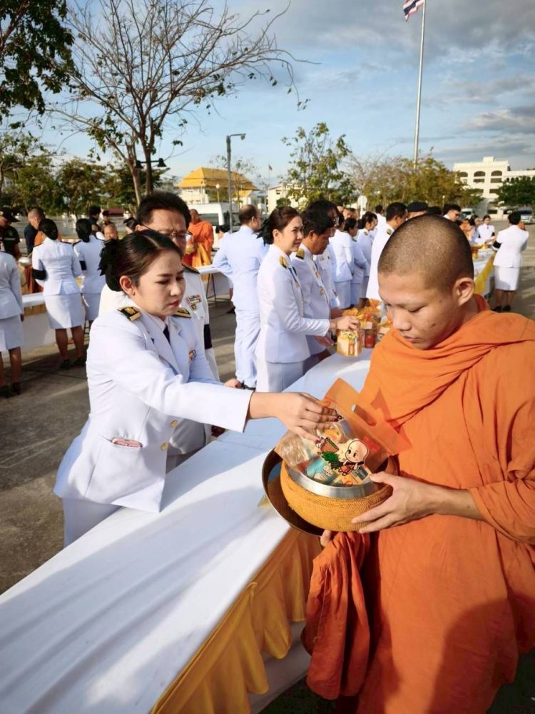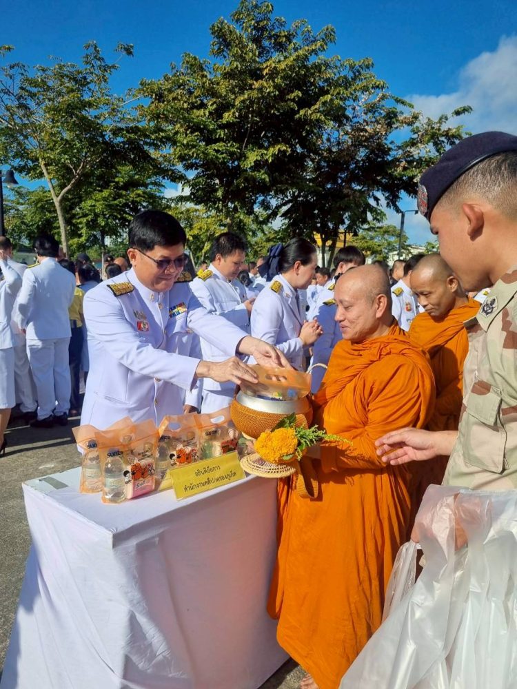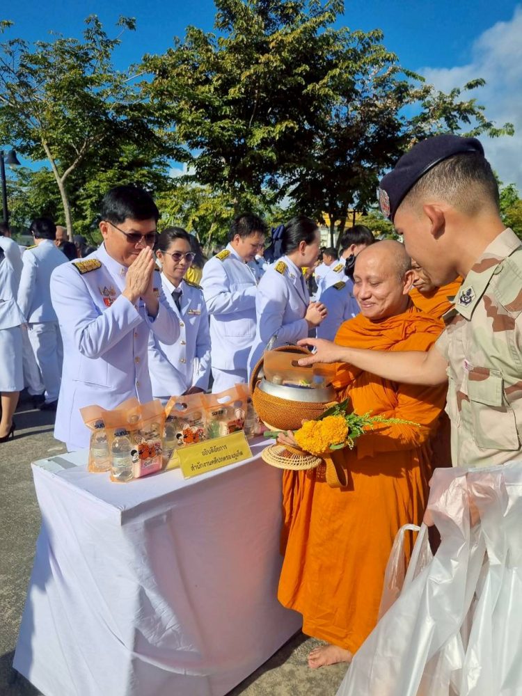 ๑. พิธีเจริญพระพุทธมนต์และทำบุญตักบาตรถวายพระราชกุศล