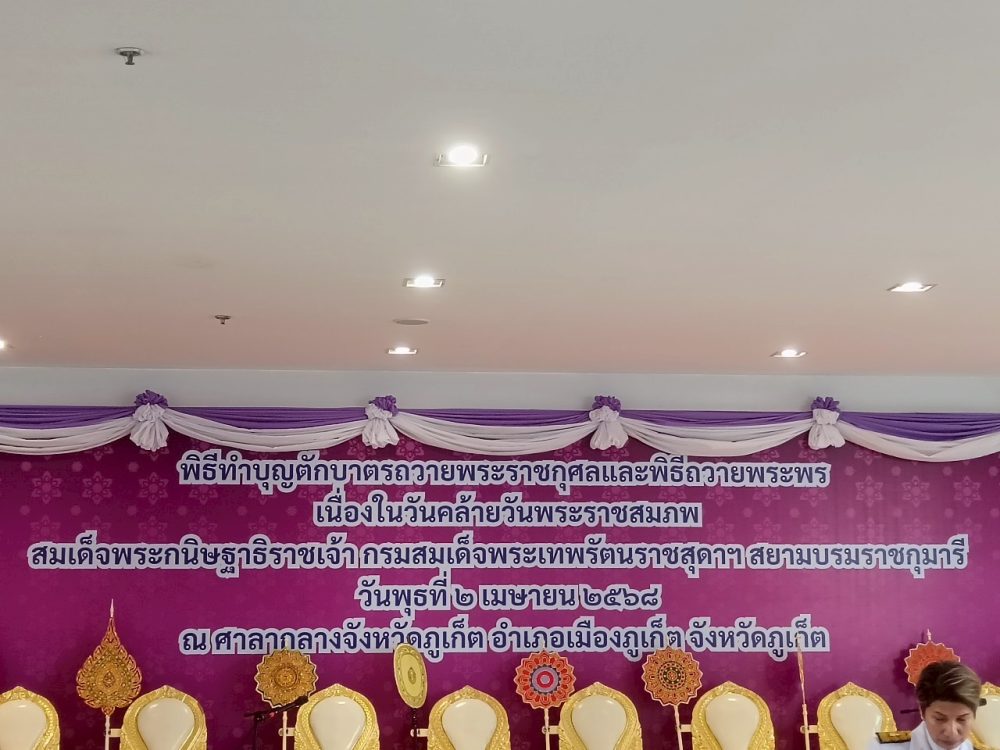 วันพุธที่ ๒ เมษายน ๒๕๖๘ เวลา ๐๗.๐๐ น. นายอุทัย สังขจร อธิบดีอัยการ สำนักงานคดีปกครองภูเก็ต พร้อมด้วยข้าราชการธุรการ ร่วมพิธีทำบุญตักบาตรและพิธีถวายพระพร สมเด็จพระกนิษฐาธิราชเจ้า กรมสมเด็จพระเทพรัตนราชสุดาฯ สยามบรมราชกุมารี เนื่องในวันคล้ายวันพระราชสมภพ ณ บริเวณโถงอาคารศาลากลางจังหวัดภูเก็ต ชั้น ๑ (ฝั่งอาคารหอประชุม) ศาลากลางจังหวัดภูเก็ต