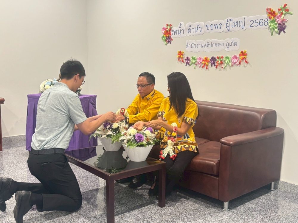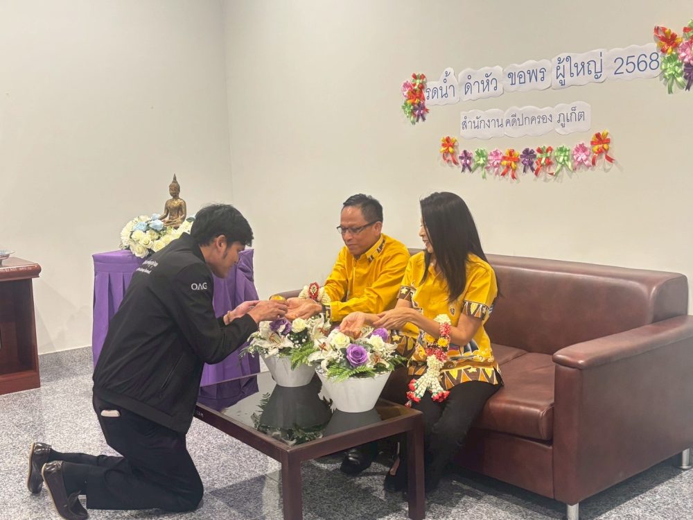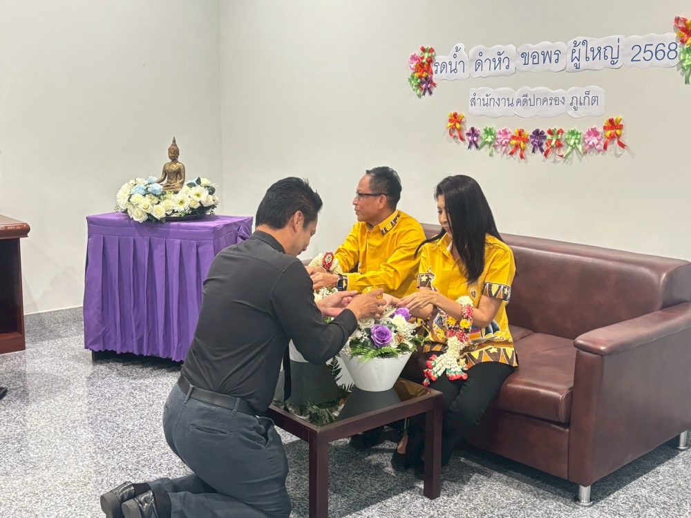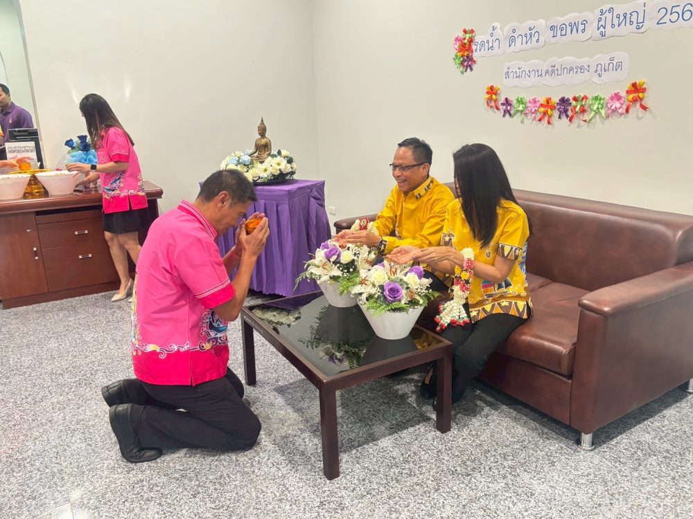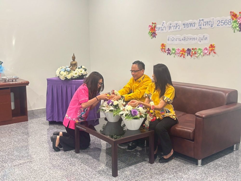 สำนักงานคดีปกครองภูเก็ต ร่วมสืบสานประเพณีสรงน้ำพระ รดน้ำ ดำหัว พ.ศ. ๒๕๖๘ เนื่องในวันปีใหม่ไทย ณ สำนักงานคดีปกครองภูเก็ต โดยมีอัยการจังหวัดภูเก็ต พร้อมคณะ และบุคลากรสำนักงานอัยการคุ้มครองสิทธิและช่วยเหลือทางกฎหมายและการบังคับคดีจังหวัดภูเก็ต เข้าร่วม