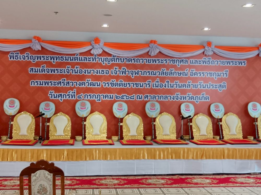 วันอังคารที่ ๒๕ พฤศจิกายน ๒๕๖๘ เวลา ๐๗.๐๐ น. นางทักษพร วิมลพันธุ์ อัยการผู้เชี่ยวชาญพิเศษ พร้อมด้วยข้าราชการธุรการของสำนักงานคดีปกครองภูเก็ต เข้าร่วมพิธีเจริญพระพุทธมนต์และทำบุญตักบาตรถวายพระราชกุศลแด่พระบาทสมเด็จพระมงกุฎเกล้าเจ้าอยู่หัว เนื่องในโอกาสวันคล้ายวันสวรรคตครบ ๑๐๐ ปี และถวายพระกุศลแด่สมเด็จพระเจ้าภคีนีเธอ เจ้าฟ้าเพชรรัตนราชสุดา สิริโสภาพัณณวดี เนื่องในโอกาสวันคล้ายวันประสูติครบ ๑๐๐ ปี ณ ห้องประชุมปฐมจริยา โรงเรียนเทศบาลปลูกปัญญา