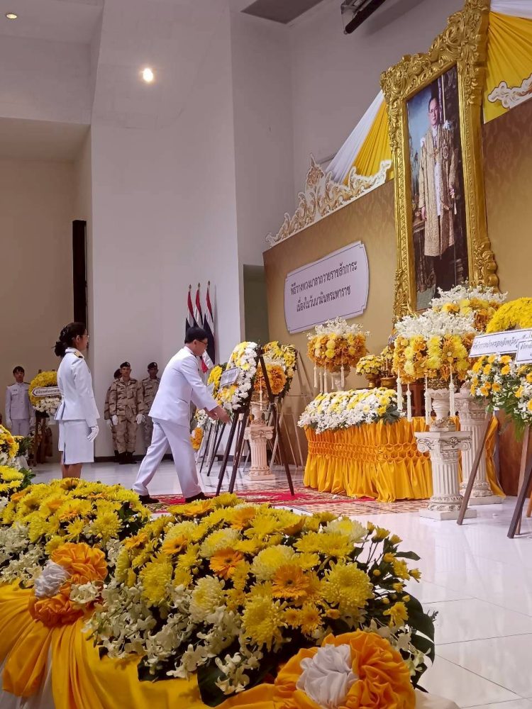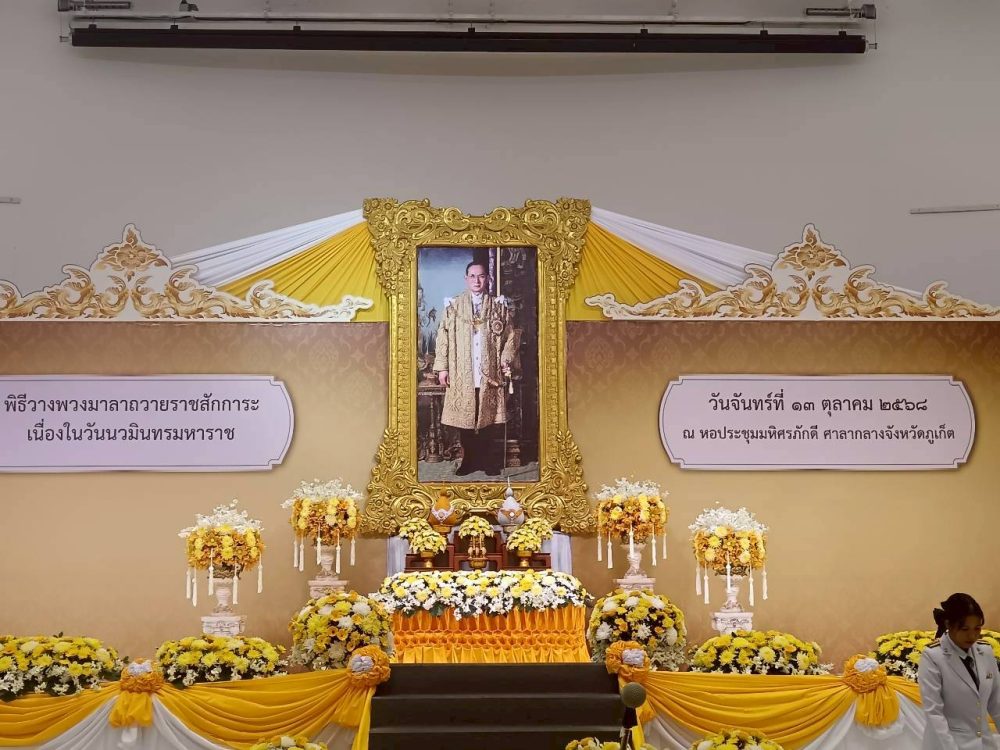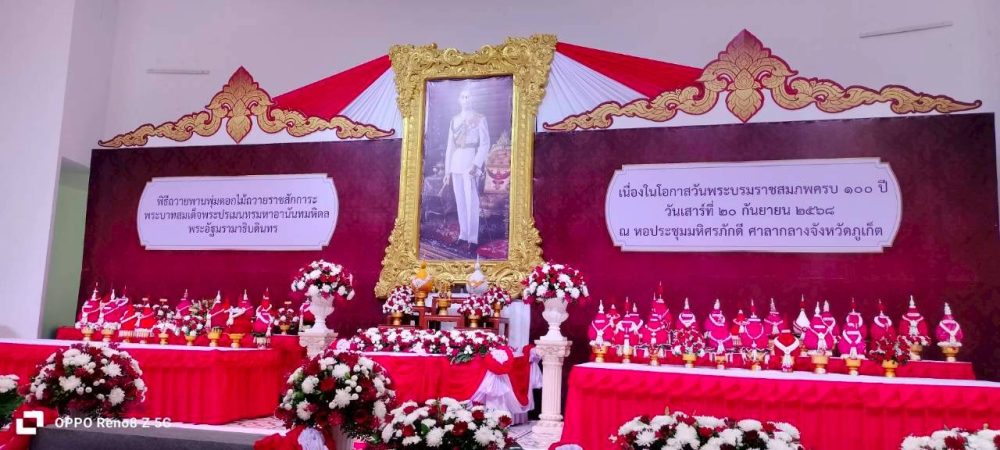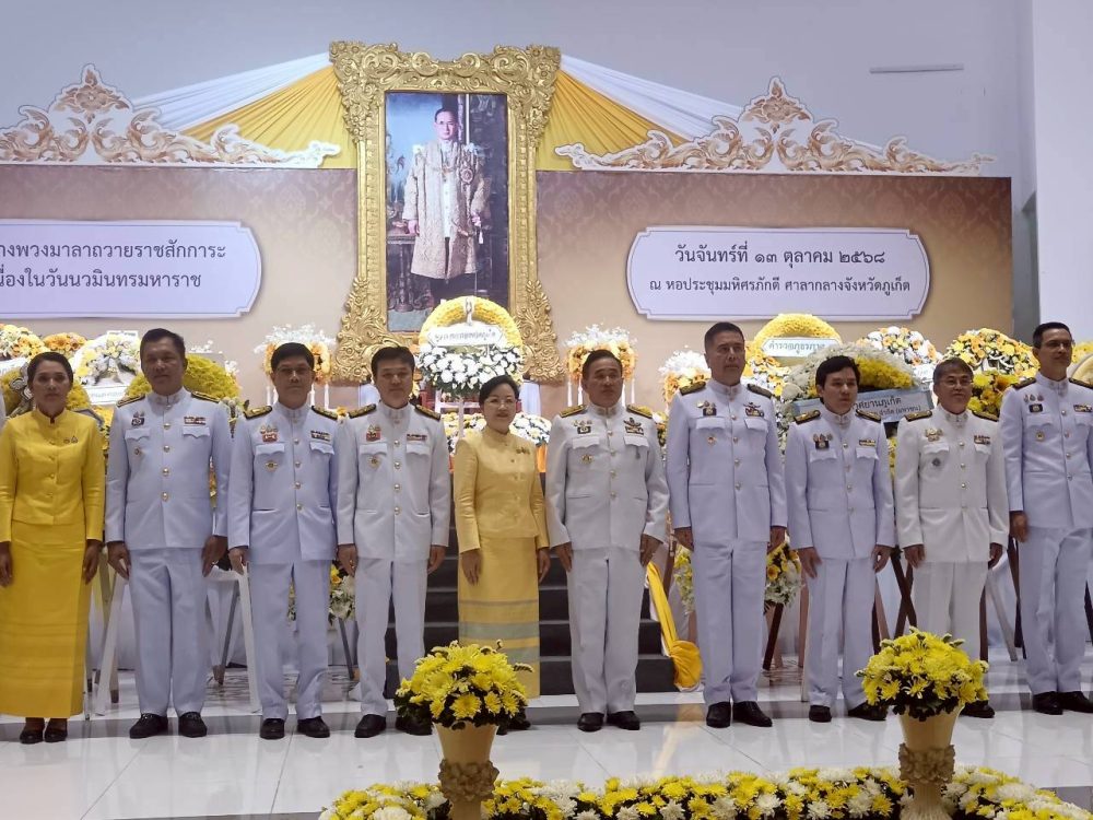 ๒. พิธีวางพวงมาลาถวายราชสักการะ (ต่อเนื่องจากพิธีทำบุญตักบาตรฯ) ณ หอประชุมมหิศรภักดี ศาลากลางจังหวัดภูเก็ต