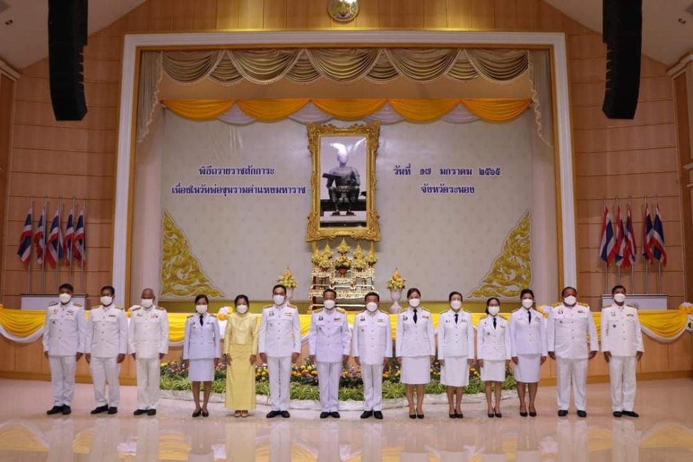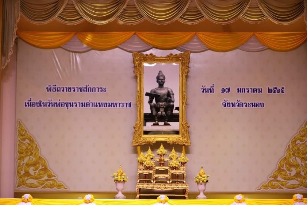 นางสาวอานา ทองสม ผู้อำนวยการ สำนักอำนวยการ สำนักงานอัยการคดีเยาวชนและครอบครัวจังหวัดระนอง ร่วมพิธีถวายพานพุ่ม ถวายราชสักการะและถวายราชสดุดีเฉลิมพระเกียรติพ่อขุนรามคำแหงมหาราช เนื่องในวันพ่อขุนรามคำแหงมหาราช วันจันทร์ที่ ๑๗ มกราคม ๒๕๖๕ เวลา ๐๘.๐๐ น ห้องประชุมศาลากลางจังหวัดระนอง จังหวัดระนอง