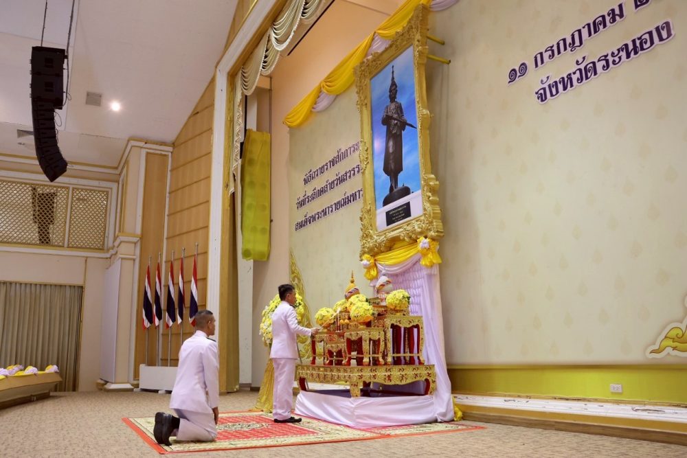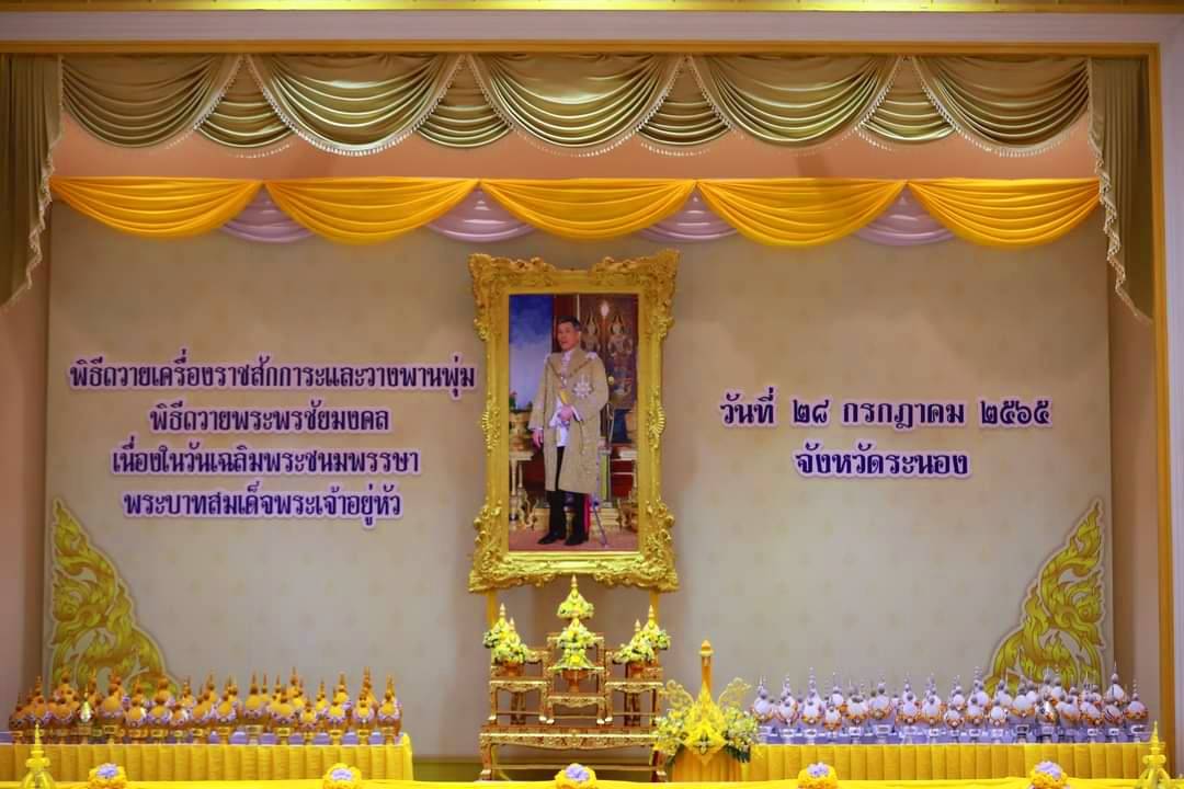 นายรังสิ สิทธิสาร อัยการจังหวัดประจำสำนักงานอัยการสูงสุด ร่วมพิธีถวายราชสักการะและวางพานพุ่ม และพิธีจุดเทียนถวายพระพรชัยมงคล เนื่องในโอกาสวันเฉลิมพระชนมพรรษาพระบาทสมเด็จพระเจ้าอยู่หัว ๒๘ กรกฎาคม ๒๕๖๕ วันพฤหัสบดีที่ ๒๘ กรกฎาคม ๒๕๖๕ เวลา ๑๗.๓๐ น. ณ หอประชุมจังหวัดระนอง จังหวัดระนอง