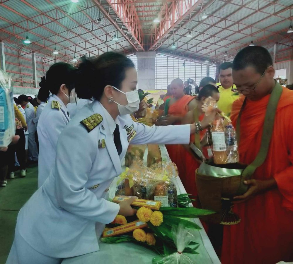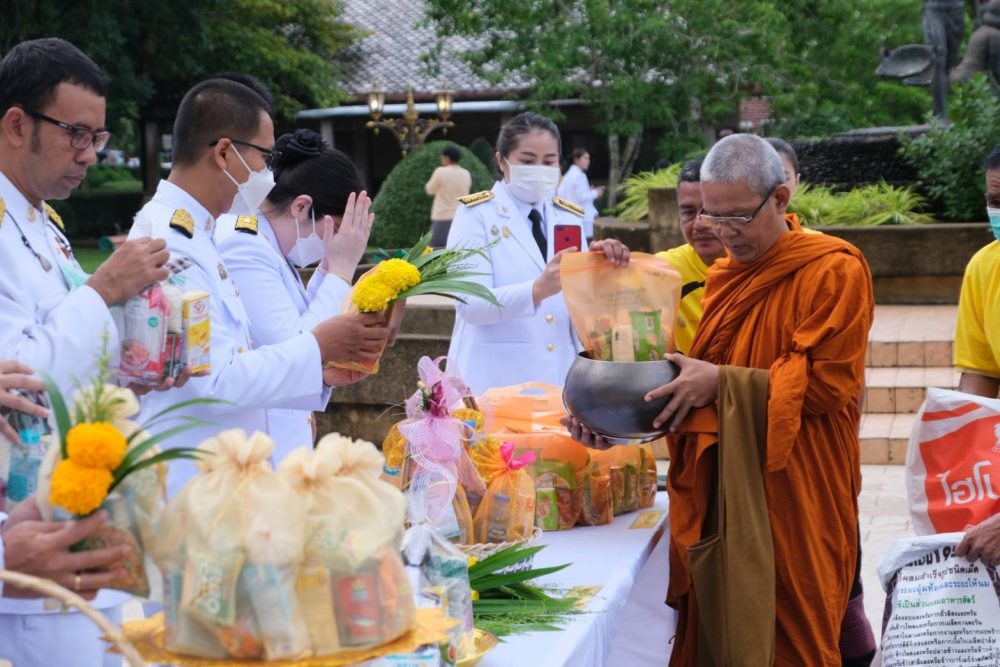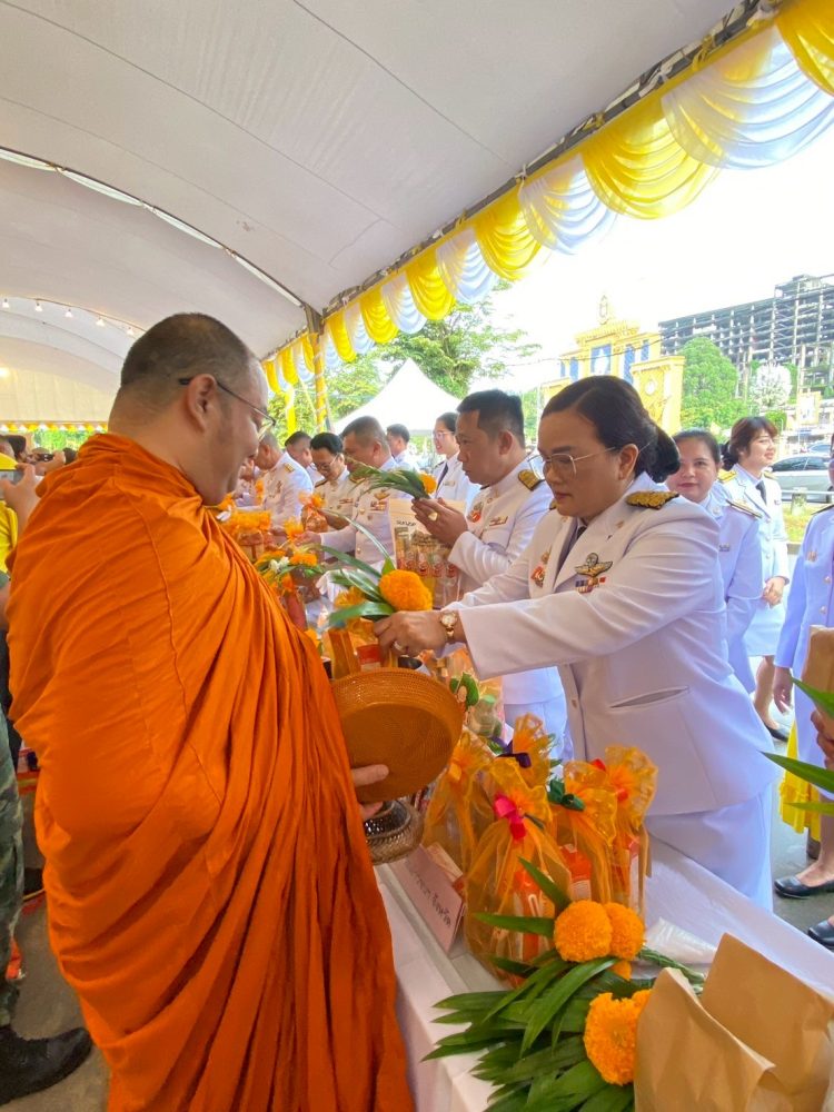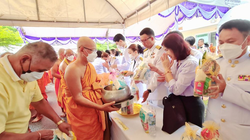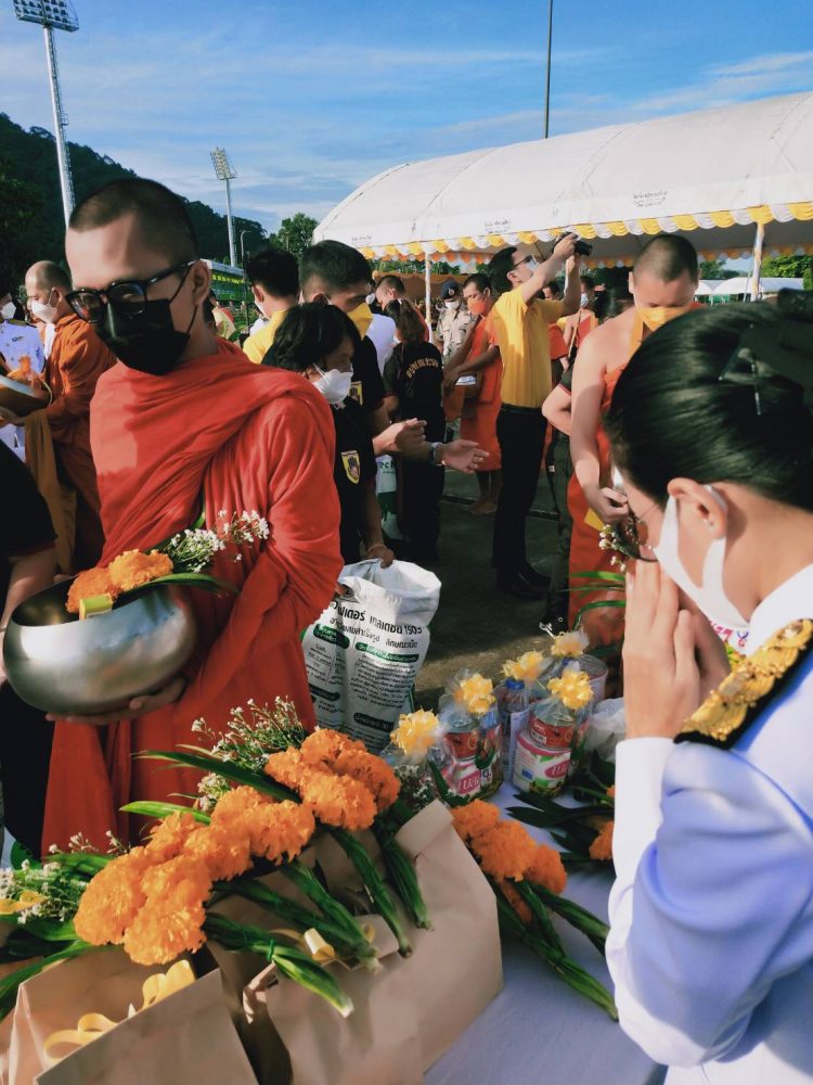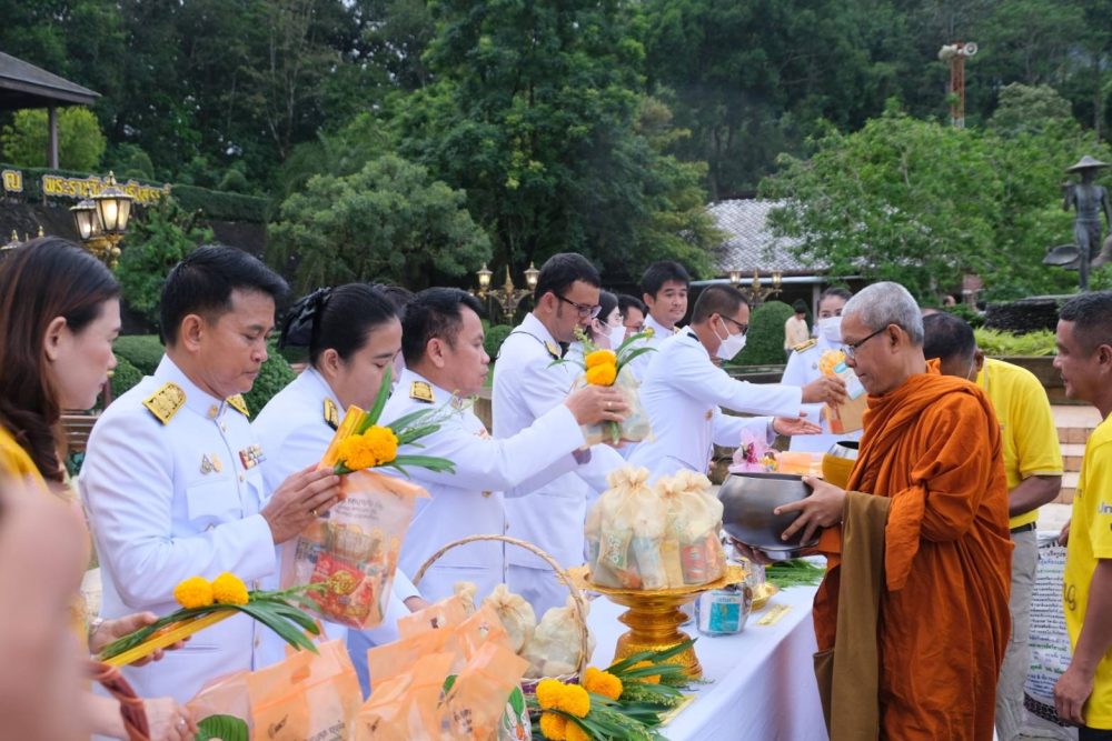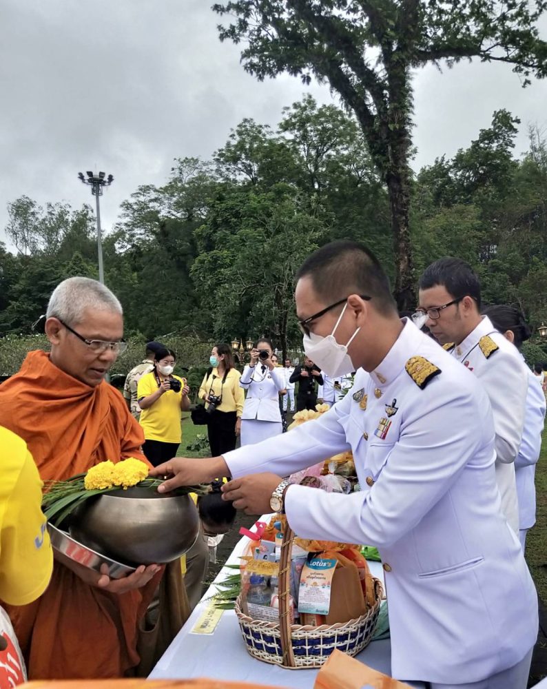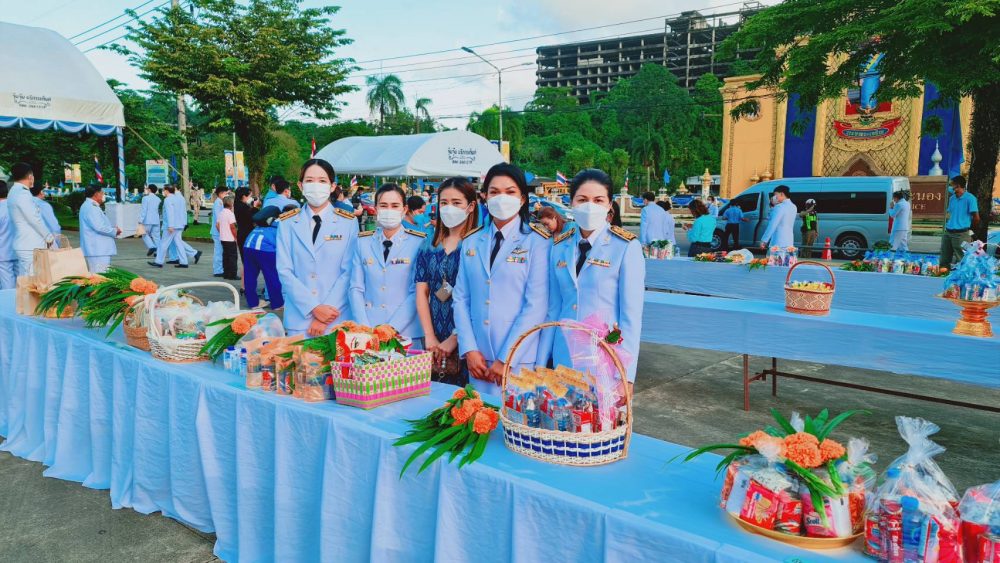 นางสาวณัฐวรินธร จิรโชติมุขสิริ อัยการประจำกอง สำนักงานอัยการคดีเยาวชนและครอบครัวจังหวัดระนอง พร้อมด้วยข้าราชการฝ่ายอัยการร่วมพิธีทำบุญตักบาตรถวายพระราชกุศล เนื่องในโอกาสวันเฉลิมพระชนมพรรษาพระบาทสมเด็จพระเจ้าอยู่หัว ๒๘ กรกฎาคม ๒๕๖๕ ในวันพฤหัสบดีที่ ๒๘ กรกฎาคม ๒๕๖๕ เวลา ๐๖.๓๐ น. ณ บริเวณลานอเนกประสงค์ หน้าเทศบาลเมืองระนอง จังหวัดระนอง
