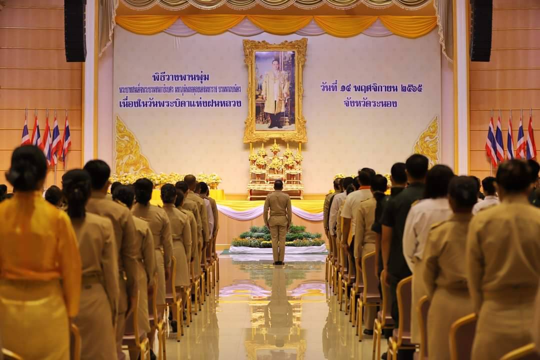นางสาวณัฐวรินธร จิรโชติมุขสิริ อัยการประจำกอง สำนักงานอัยการคดีเยาวชนและครอบครัวจังหวัดระนอง พร้อมด้วยข้าราชการฝ่ายอัยการร่วมพิธีถวายพานพุ่มดอกไม้ เนื่องในวันพระบิดาแห่งฝนหลวง” เพื่อน้อมรำลึกในพระมหากรุณาธิคุณพระบาทสมเด็จพระบรมชนกาธิเบศร มหาภูมิพลอดุลยเดชมหาราช บรมนาถบพิตร วันจันทร์ที่ ๑๔ พฤศจิกายน ๒๕๖๕ เวลา ๐๙.๐๐ น. ณ หอประชุมจังหวัดระนอง ศูนย์ราชการจังหวัดระนอง