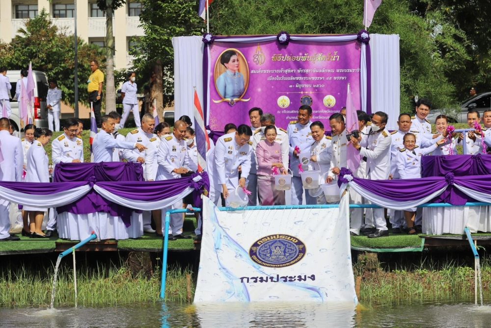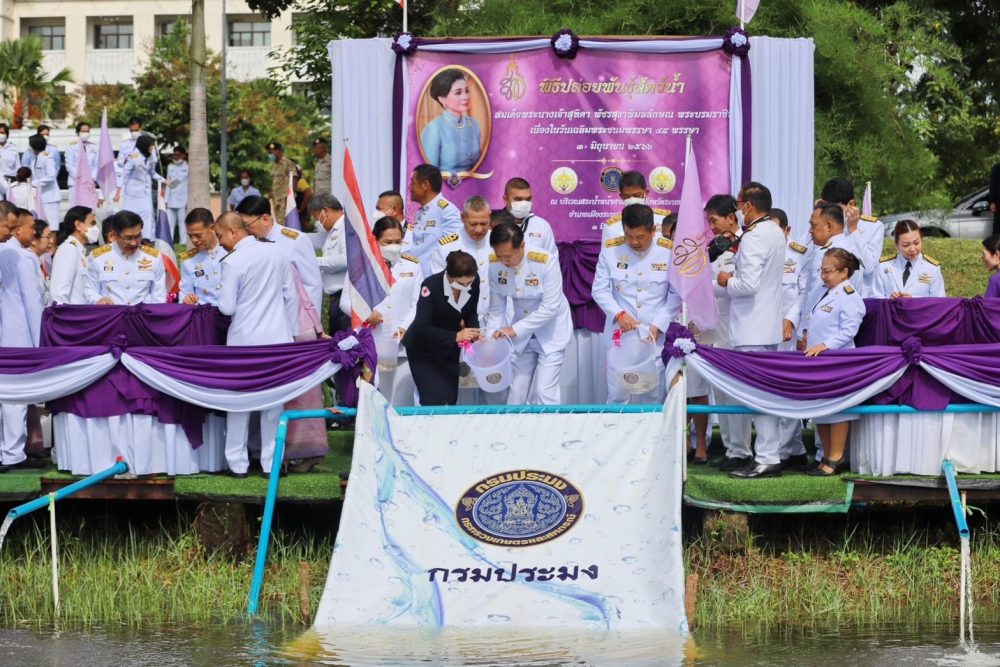 นางตะวัน ตังคโนภาส อัยการจังหวัดประจำสำนักงานอัยการสูงสุด สำนักงานคดีอาญาธนบุรี รักษาการในตำแหน่ง อัยการจังหวัดคดีเยาวชนและครอบครัวจังหวัดระนอง ร่วมพิธีปล่อยพันธุ์สัตว์น้ำ เนื่องในวันเฉลิมพระชนมพรรษา สมเด็จพระนางเจ้าฯ พระบรมราชินี ในวันเสาร์ที่ ๓ มิถุนายน ๒๕๖๖ เวลา ๐๙.๒๐ น. ณ สระน้ำ หน้าศาลากลาง ศูนย์ราชการจังหวัดระนอง