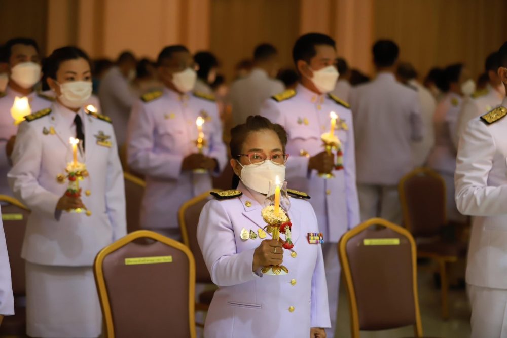 นางสาวณัฐวรินธร จิรโชติมุขสิริ อัยการประจำกอง สำนักงานอัยการคดีเยาวชนและครอบครัวจังหวัดระนอง ร่วมพิธีถวายเครื่องราชสักการะ วางพานพุ่มเงิน พานพุ่มทอง และพิธีจุดเทียนถวายพระพรชัยมงคลเนื่องในโอกาสมหามงคลเฉลิมพระชนมพรรษา ๙๐ พรรษา ๑๒ สิงหาคม ๒๕๖๕ วันศุกร์ที่ ๑๒ สิงหาคม ๒๕๖๕ เวลา ๑๘.๐๐ น. ที่หอประชุมจังหวัดระนอง ศูนย์ราชการจังหวัดระนอง
